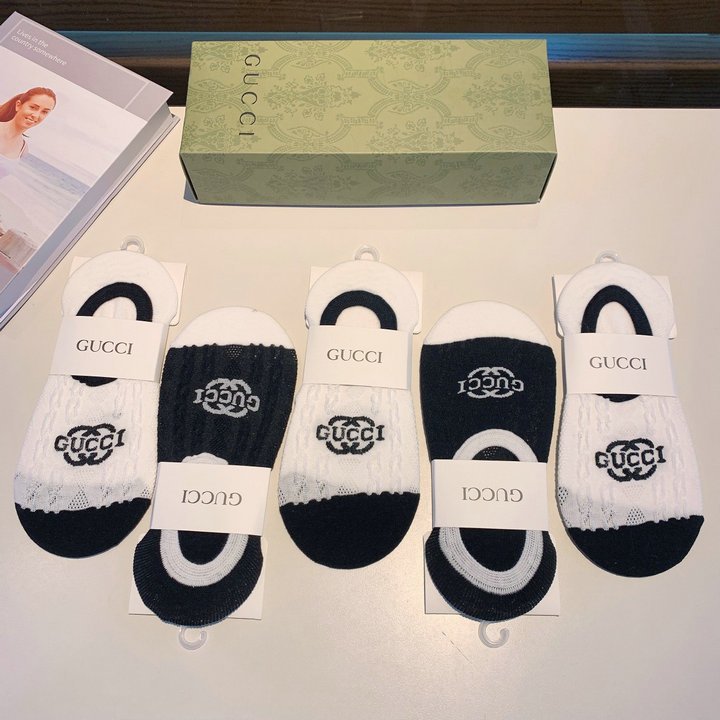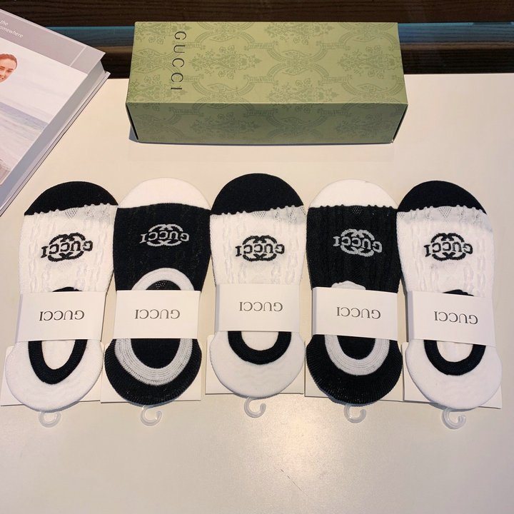 Gucci 袜子两色,前面有 GG 黑色和白色