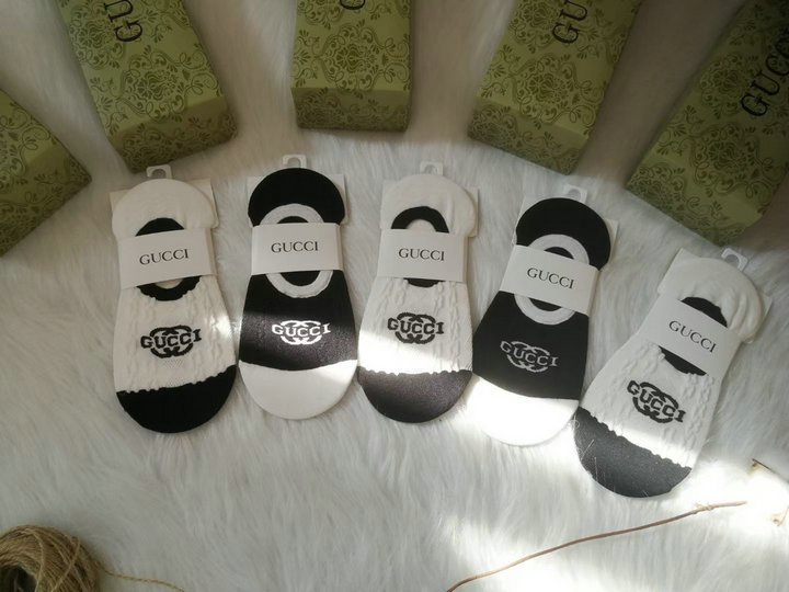 对比色袜子,前面有 GG 标志