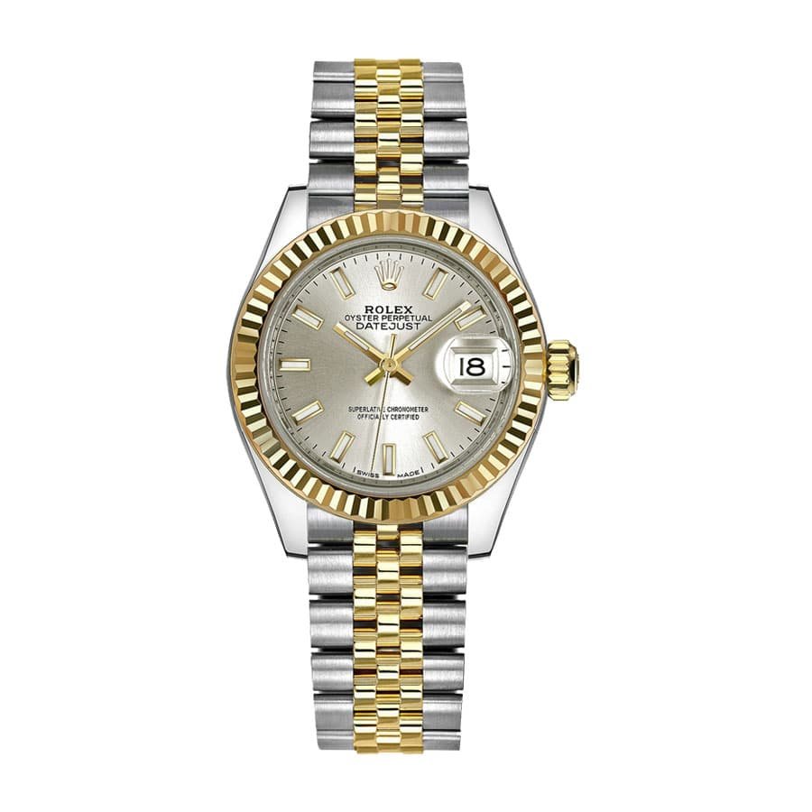 这款劳力士 Lady-Datejust 279173-0019 复刻表是一款耀眼的腕表。它采用 904L 不锈钢表壳、黄金表圈、蓝宝石水晶镜面和带可调节链节的 Jubilee 表链。银色表盘带有棒状和点状刻度,904L 不锈钢指针为棒状。自动机芯为 2236 型,动力储存 60 小时,精度为 -3/+3 秒/天(在 COSC 认证范围内)。这款腕表通过了 30 米防水测试,并享有 2 年国际保修。