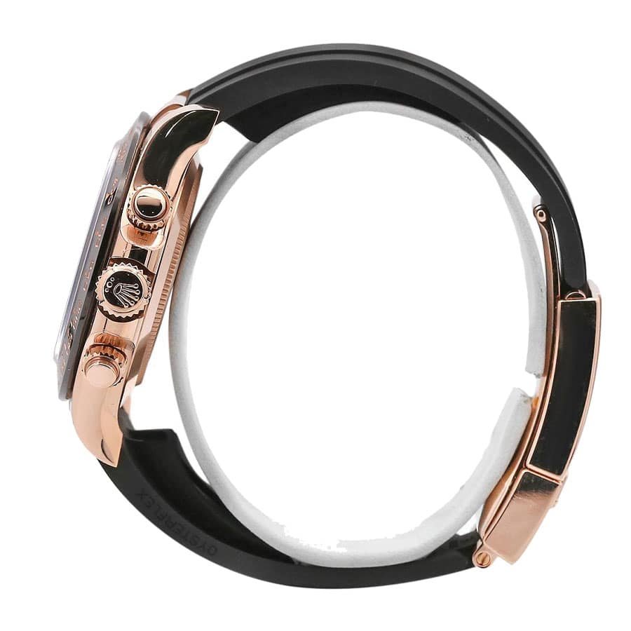 这款劳力士宇宙计型迪通拿永恒玫瑰金象牙色表盘 116515LN-0014 复刻表是一款高品质手表。它采用玫瑰金色 904L 不锈钢表壳和黑色表圈。蓝宝石水晶镜面尺寸为 40.00 毫米,厚度为 12.40 毫米。橡胶表带可调节,黑色,配有玫瑰金 904L 不锈钢折叠表扣。象牙色表盘带有棒形和点状刻度,配有 904L 不锈钢棒形指针。机芯为自动机芯 4130,动力储存 60 小时,精度为(-3/+3 秒/天)在 COSC 认证范围内。