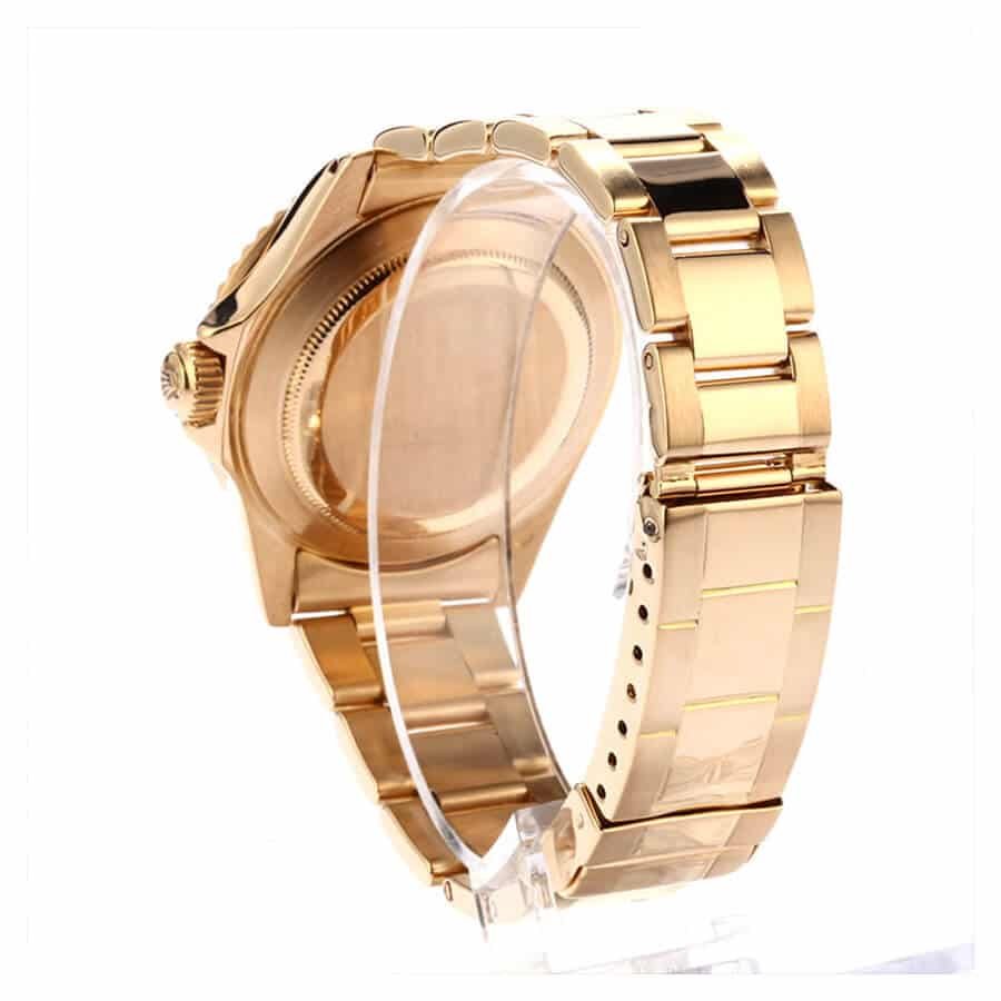 这款劳力士 GMT-Master II 116748SANR 黄金自动黑色表盘 Iced Out 复刻表是一款令人惊叹的手表。表壳由 904L 不锈钢制成,呈黄金色。表圈也由 904L 不锈钢制成,并镶嵌黄金宝石。水晶为蓝宝石水晶,尺寸为 40.00 毫米,厚度为 12.00 毫米。表链也由 904L 不锈钢制成,可调节至所有尺寸。它呈牡蛎色,镶嵌黄金宝石,配有黄金 904L 不锈钢折叠表扣。