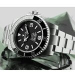劳力士 Blaken 潜航者 6190 复刻表的核心是一个坚固的 904L 不锈钢表壳,散发出强大而精致的魅力。光滑的黑色表圈与精致的黑色表盘相得益彰,营造出引人注目的视觉效果,毫不费力地吸引人们的注意力。表盘由蓝宝石水晶保护,展示混合时标和小时标记,全部由 904L 不锈钢制成,使手表具有独特而抛光的外观。自动上链的 3135 型机芯确保无缝计时,动力储存长达 60 小时,精度符合 COSC 认证限制(-3/+3 秒/天),可靠性和准确性极佳。