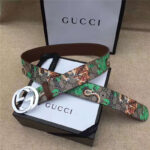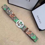 - 详细介绍:古驰Gucci2017新品上市:互扣式双G带扣腰带,采用标志性双G高级人造革精制而成,配以Caleido印花,底皮配柔软的牛皮,绝美的搭配!
