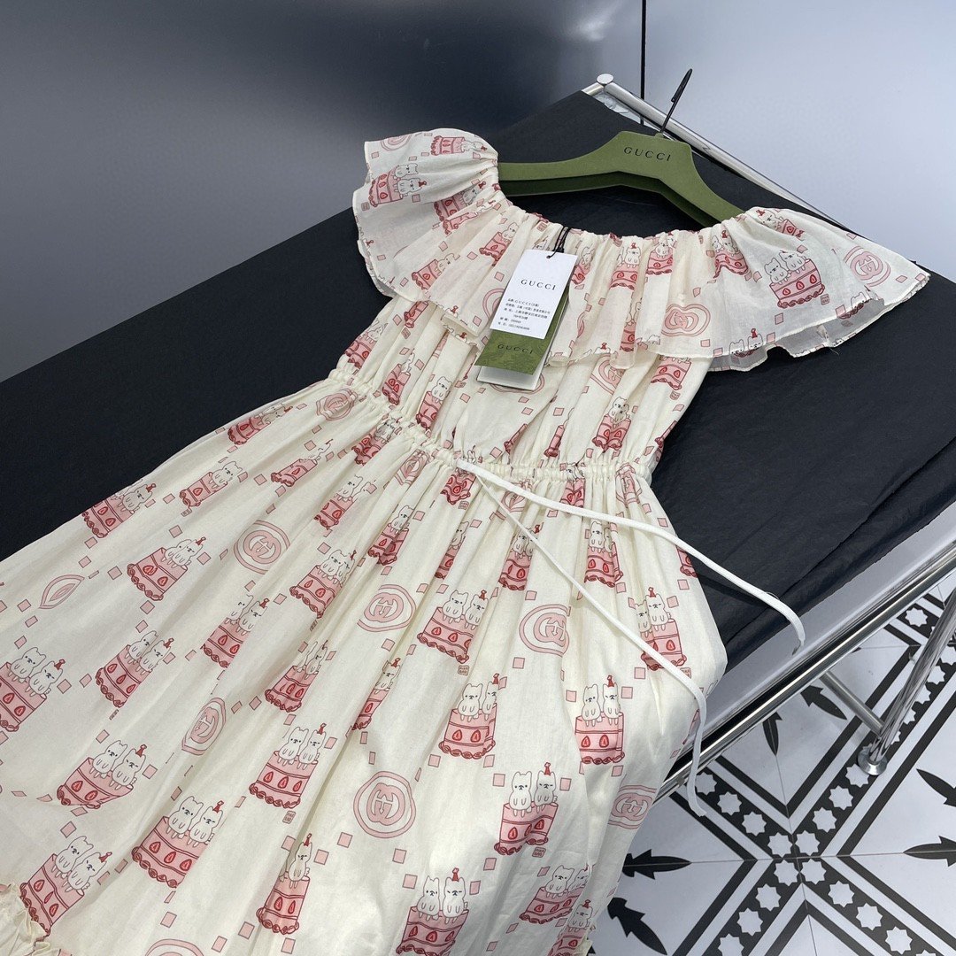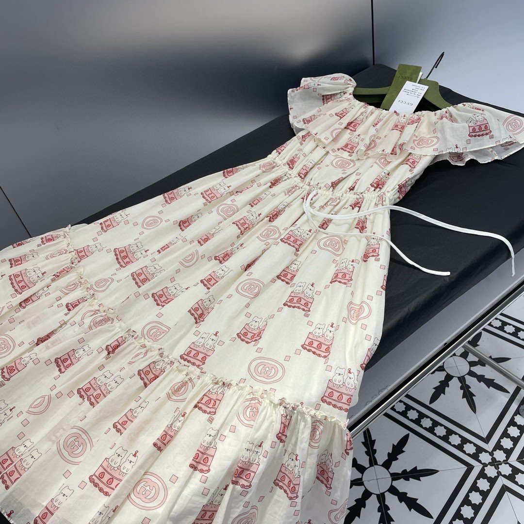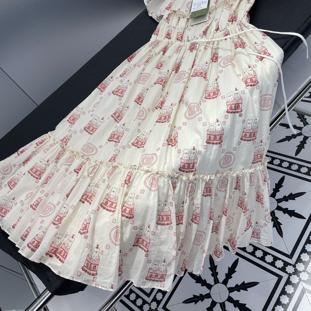 Gucci 可爱蛋糕印花连衣裙白色