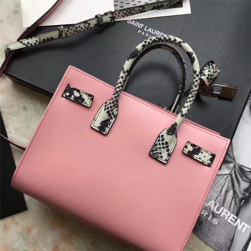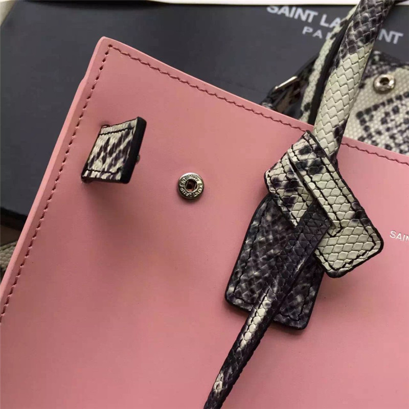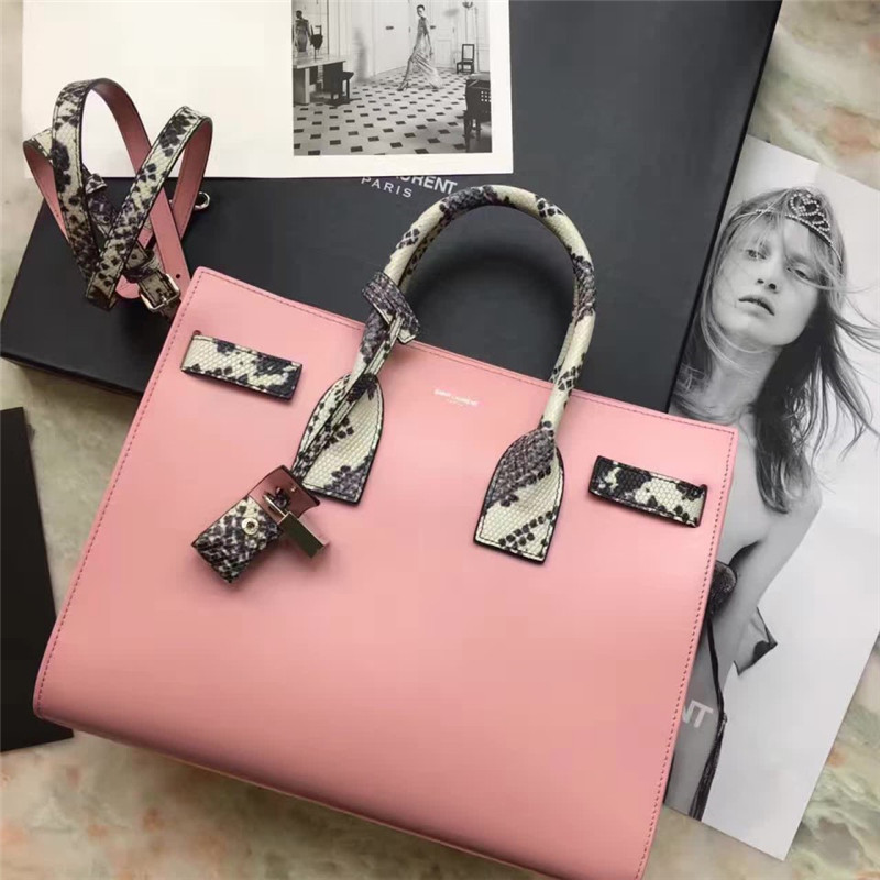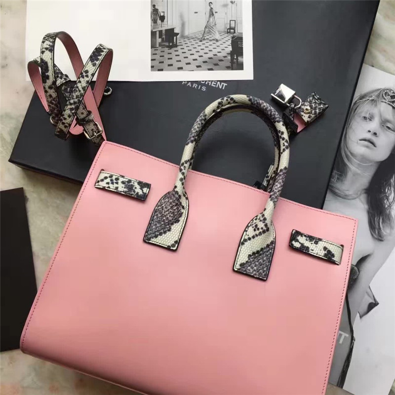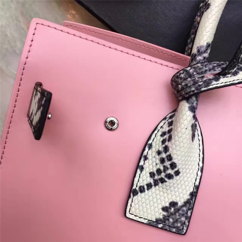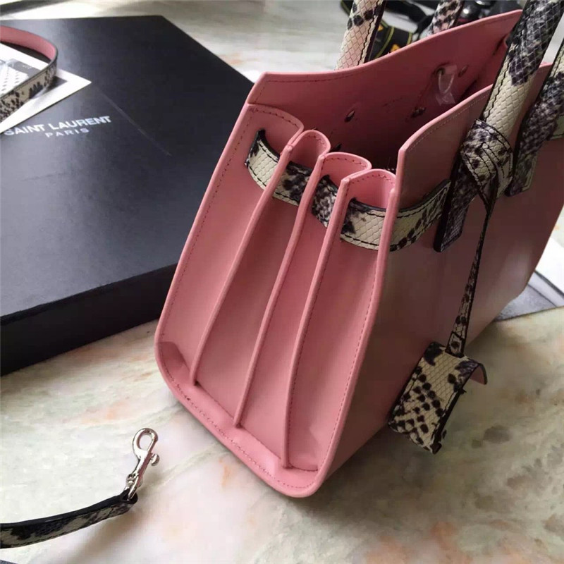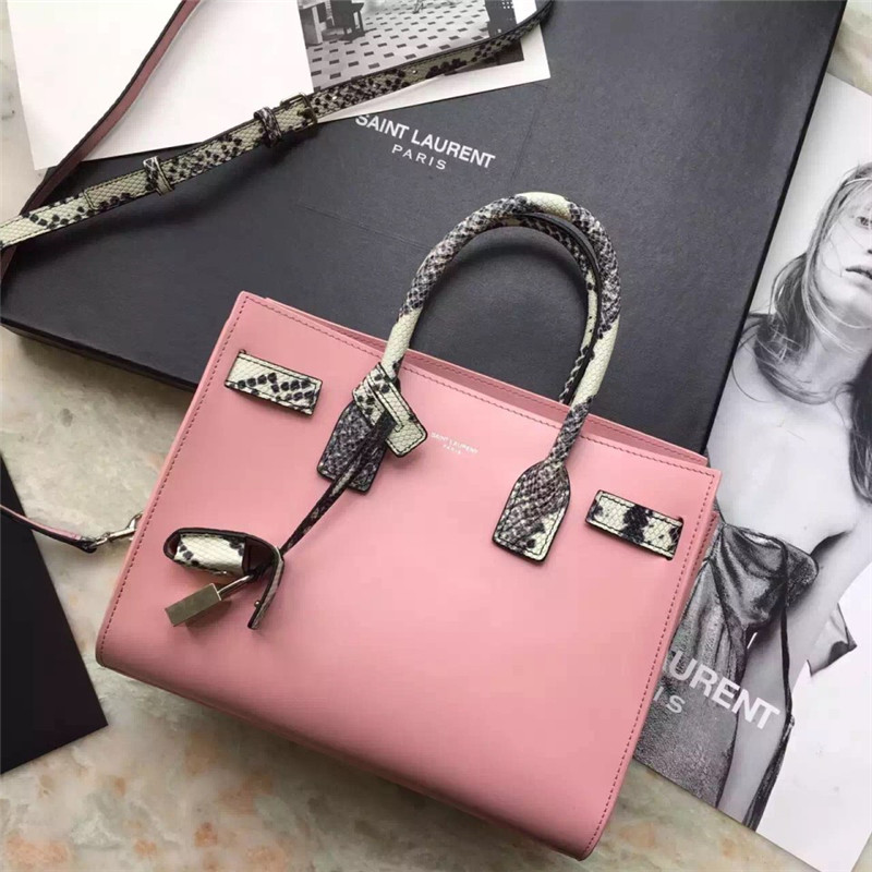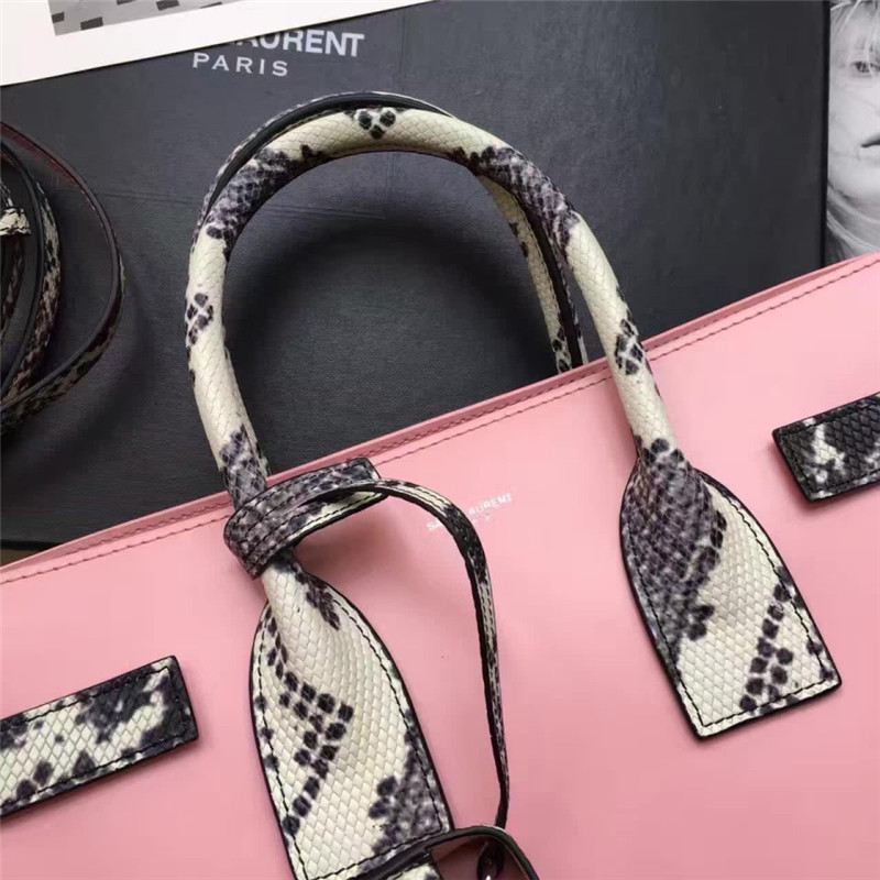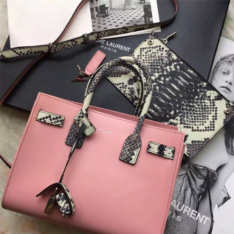 - 详细介绍:YSL圣罗兰 风琴包 原单精品!SAINT LAURENT。进口牛皮,2017年春夏SLP 经典SAC DE JOUR粉色皮革搭配黑白蟒蛇压花牛皮,侧面采用手风琴式皱褶设计搭配可调节肩带,完美呈现细节,这以假乱真的蛇纹开发了两个月,仔细看还发现有菱形的格 空间不用质疑啦都知道没有任何压力,春夏秋冬均可搭配。