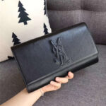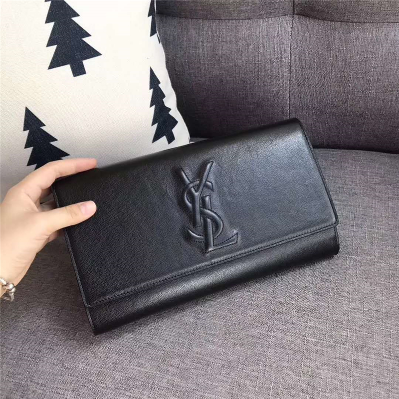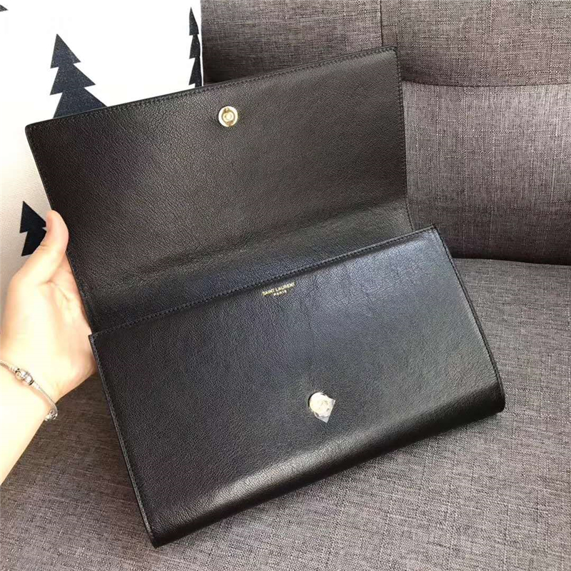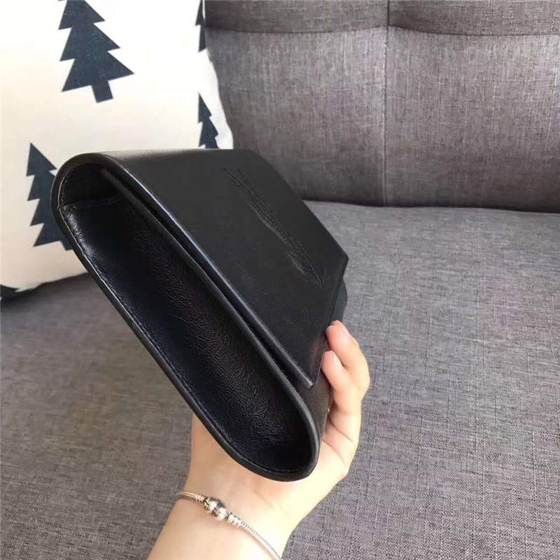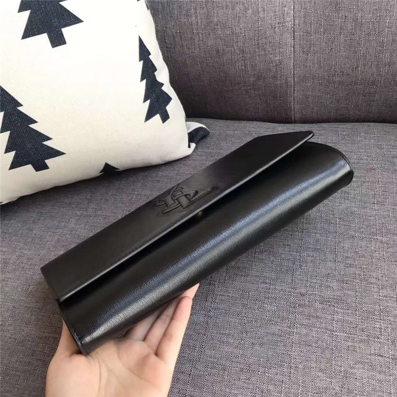 圣罗兰 SLP女包 浮雕刺绣 圣罗兰手拿包 进品小羊皮 黑色