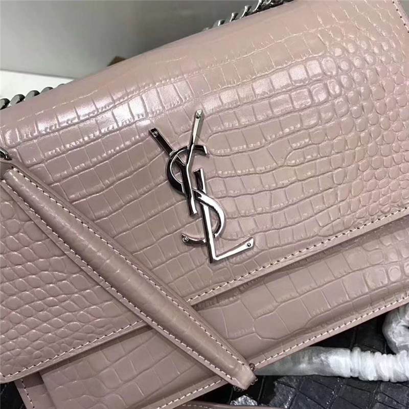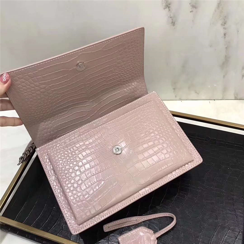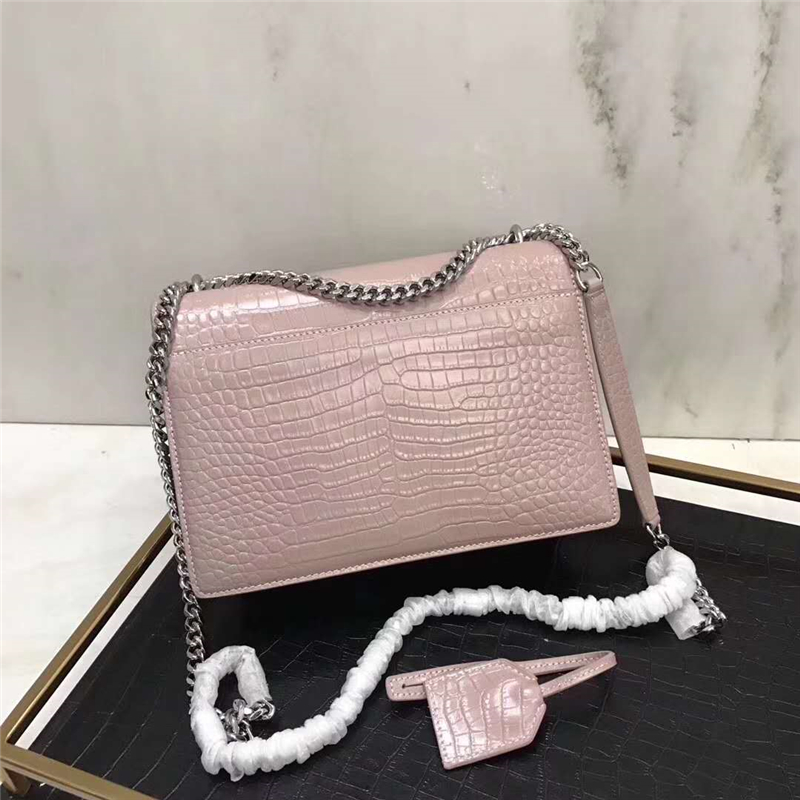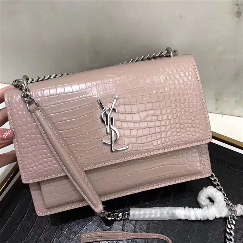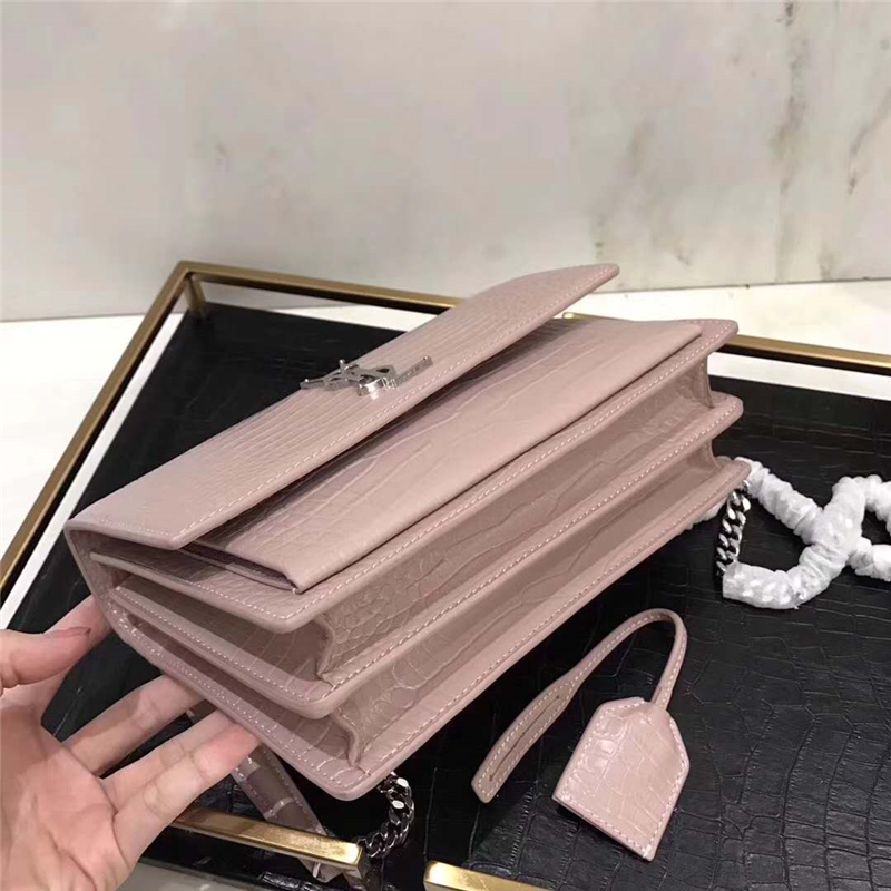 - 圣罗兰 YSL手拿包 圣罗兰链条包 2017官方同步 鳄鱼纹 粉色