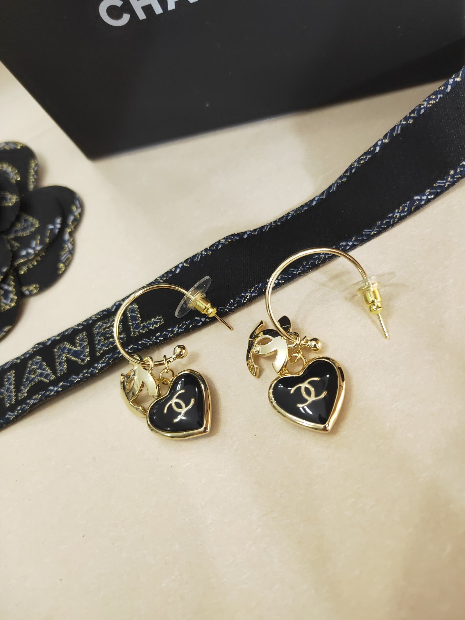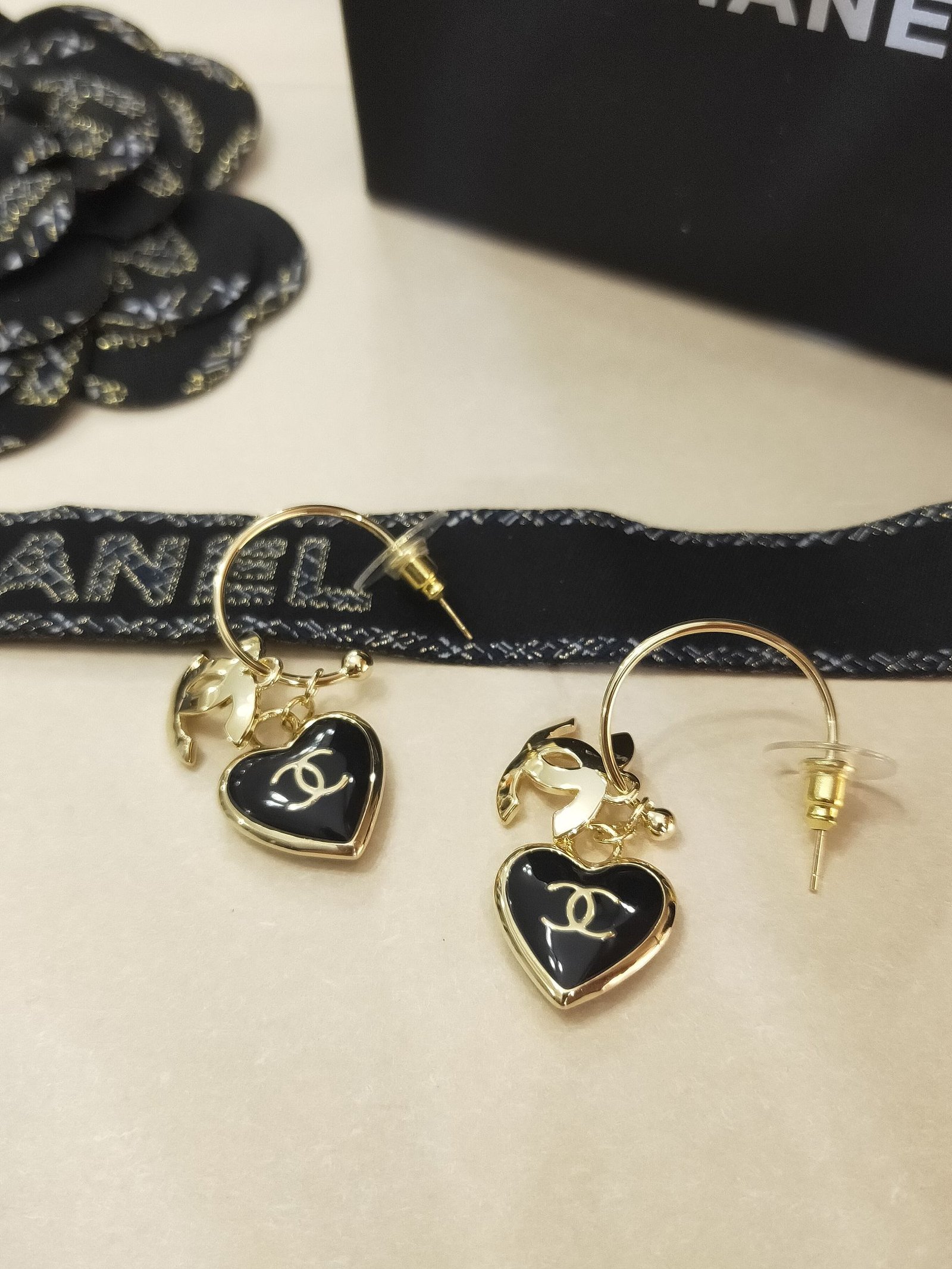 Chanel 心形耳环黑色