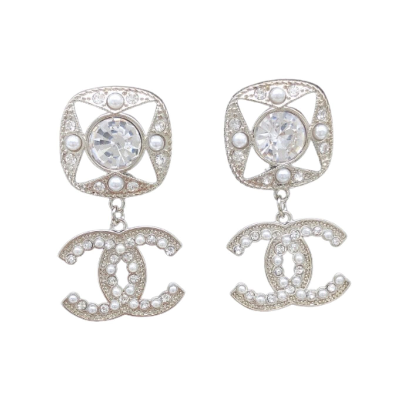 Chanel 方形双 C 耳钉白色