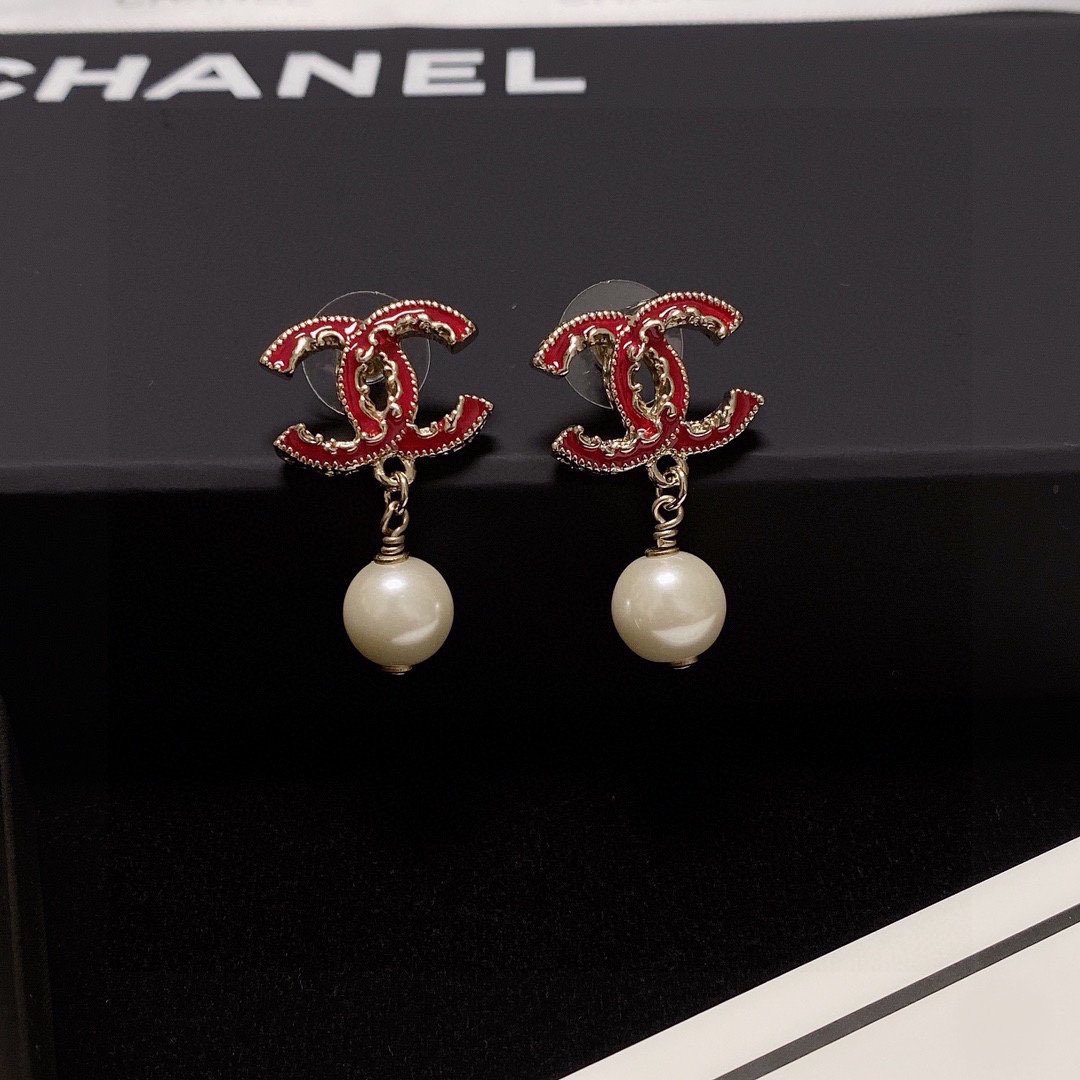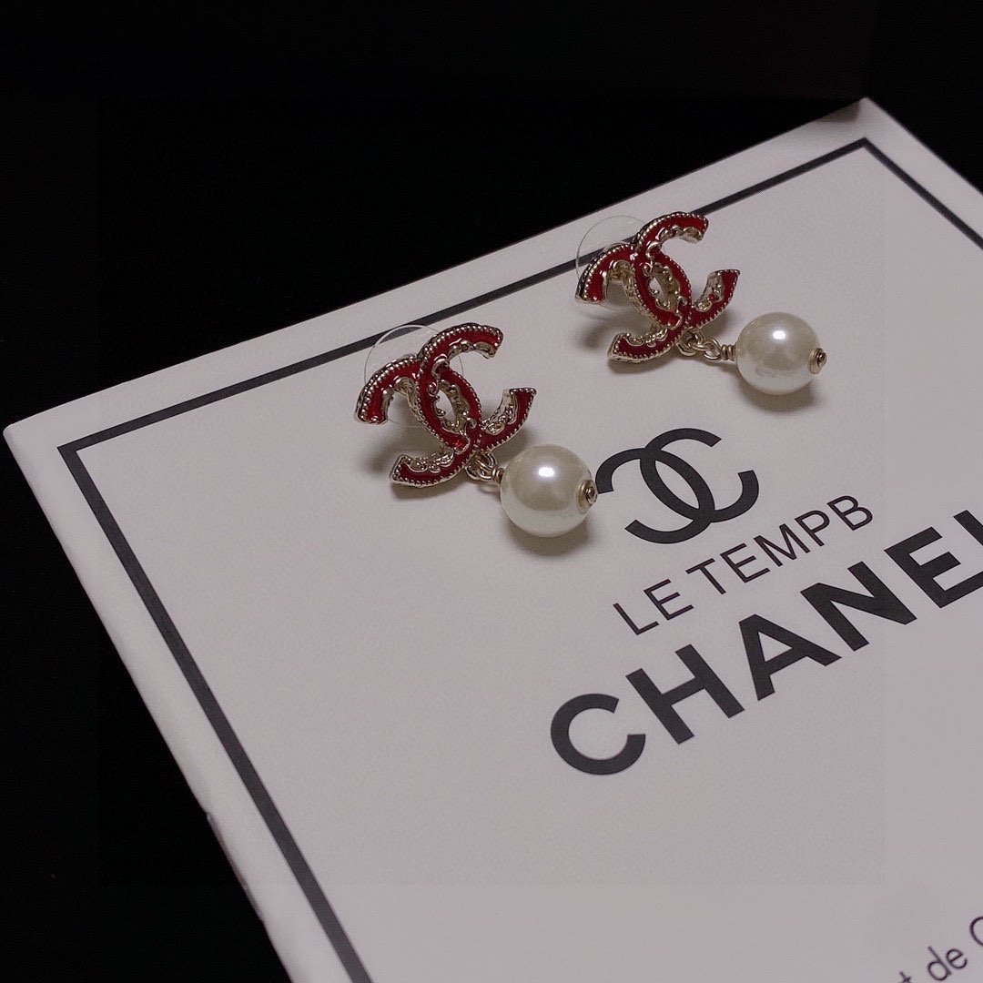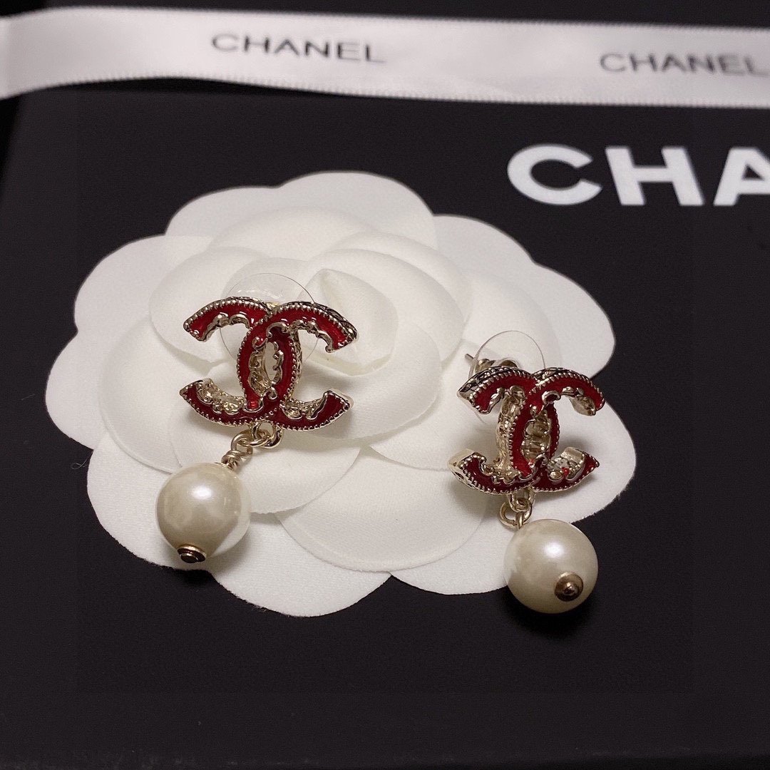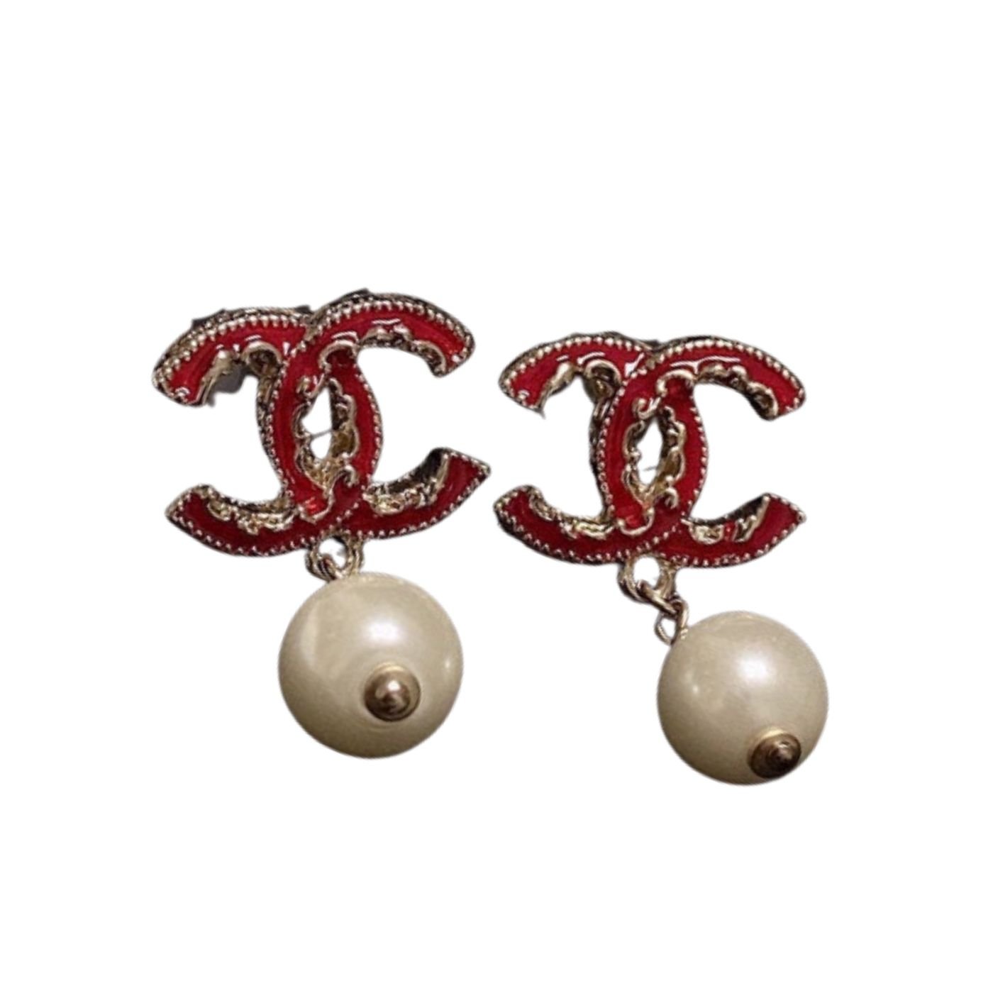 Chanel 珍珠耳环红色