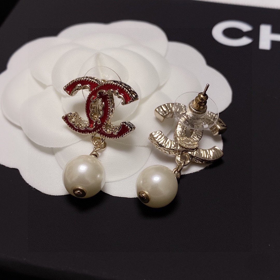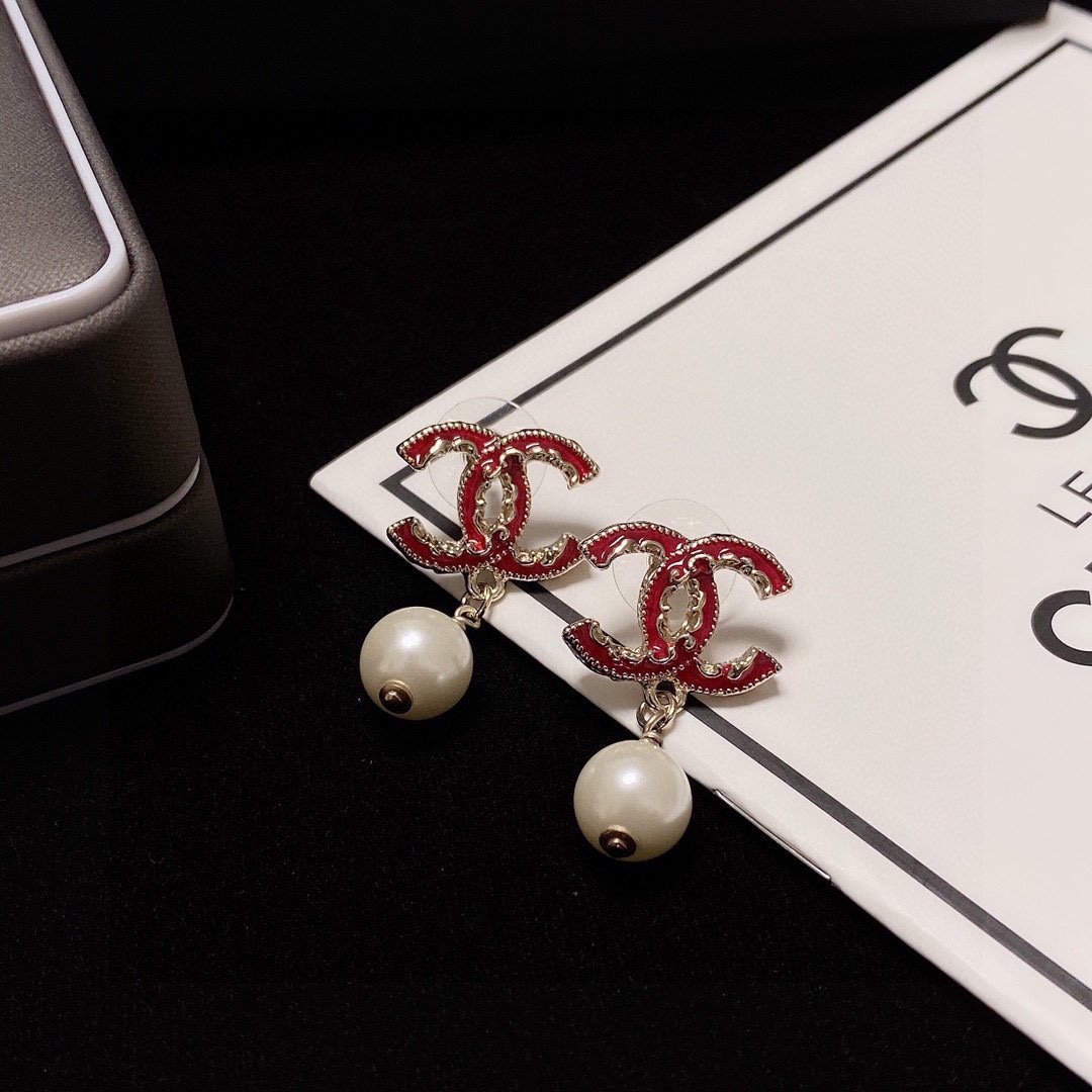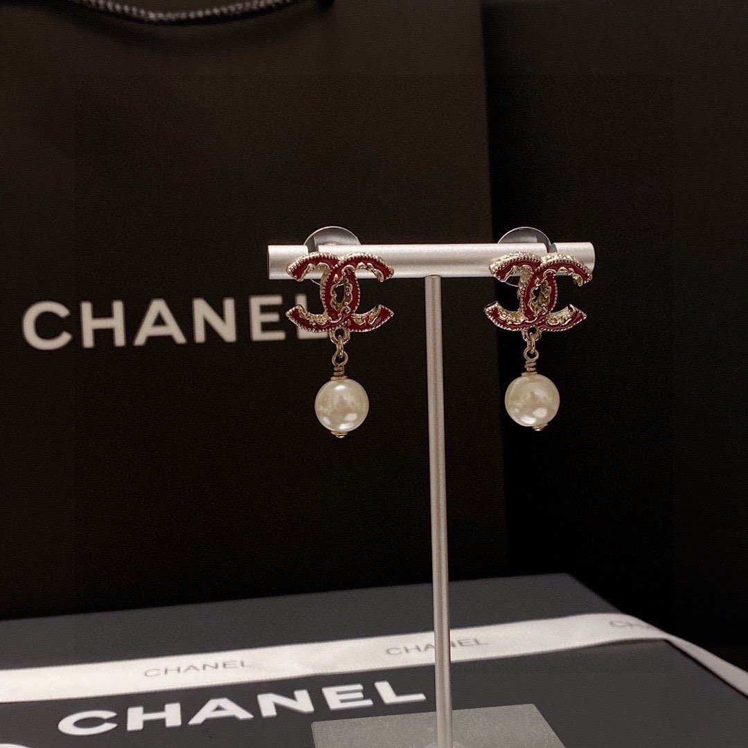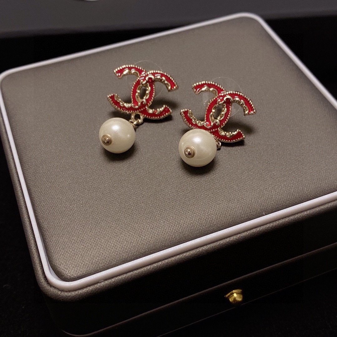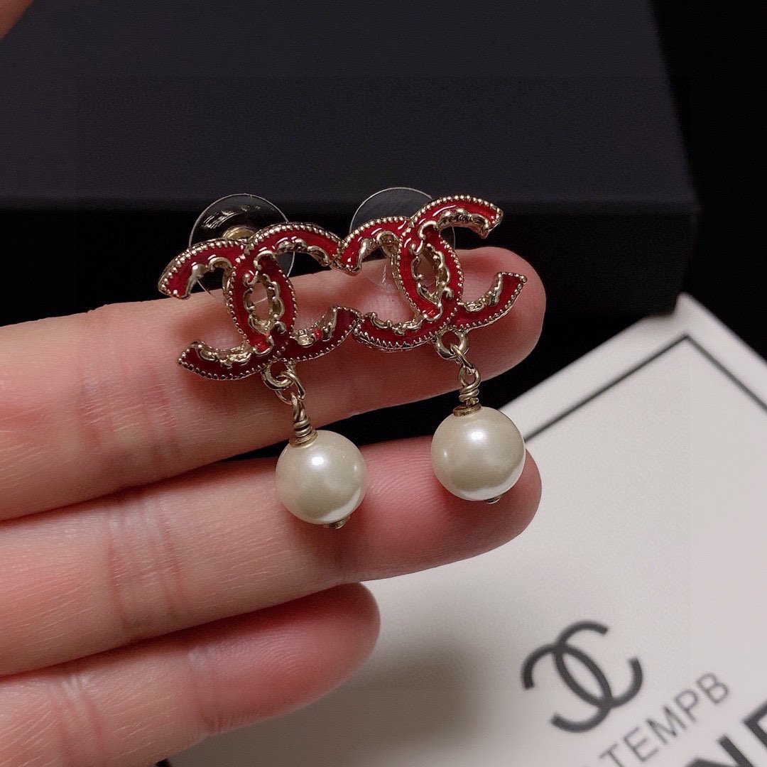 Chanel 珍珠耳环红色