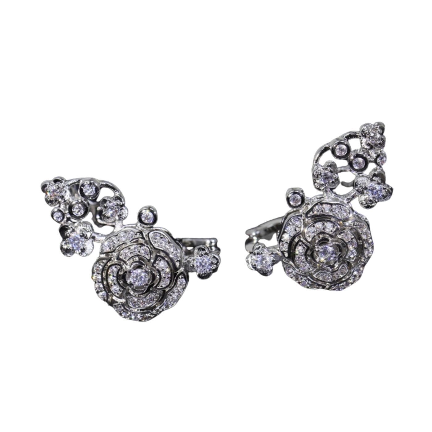 女士空心山茶花银色耳环