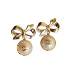 香奈儿蝴蝶结耳环金色