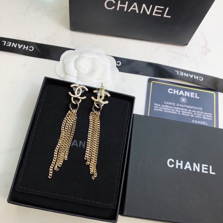 香奈儿链条长形耳环金色