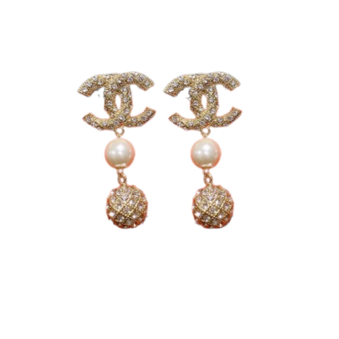 Chanel 闪亮球体耳环金色调