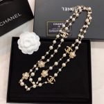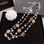 香奈儿风格花朵多层珍珠项链金色