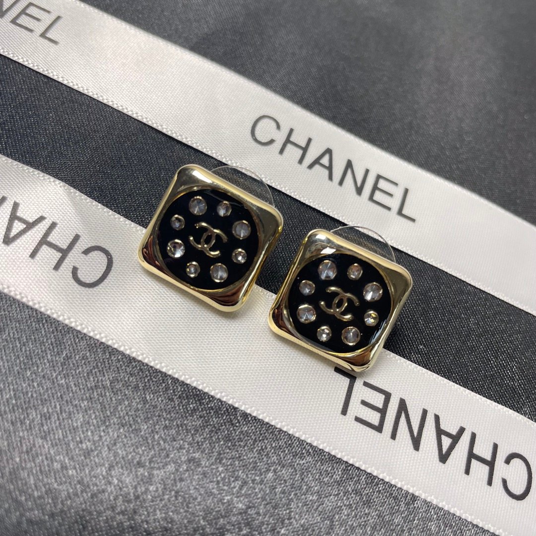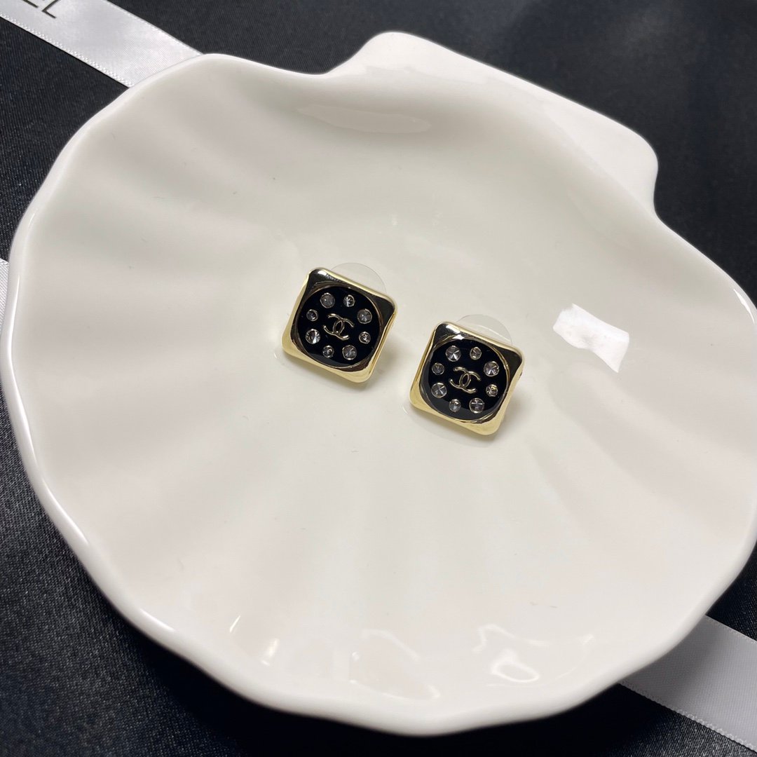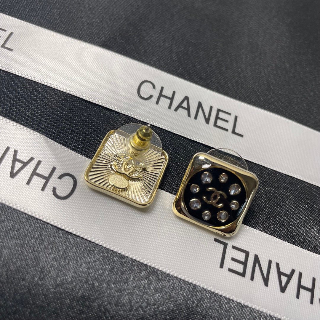 香奈儿方形耳环黑色
