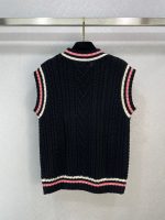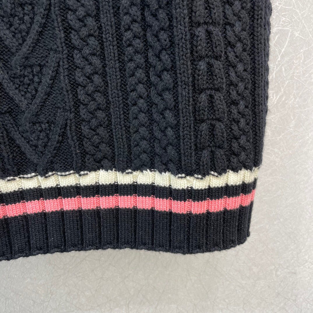 减龄学院风羊毛落肩背心,少女气质撞色