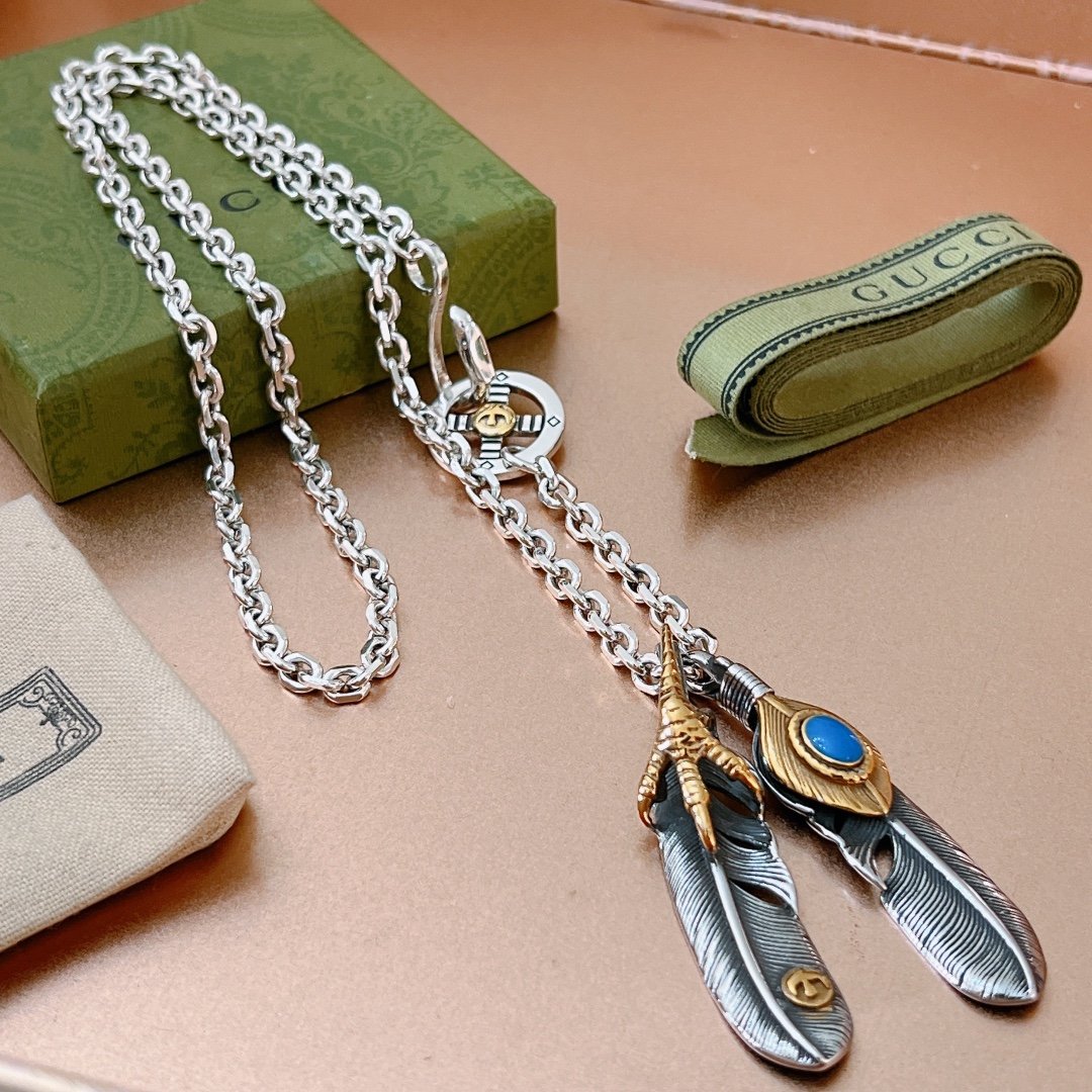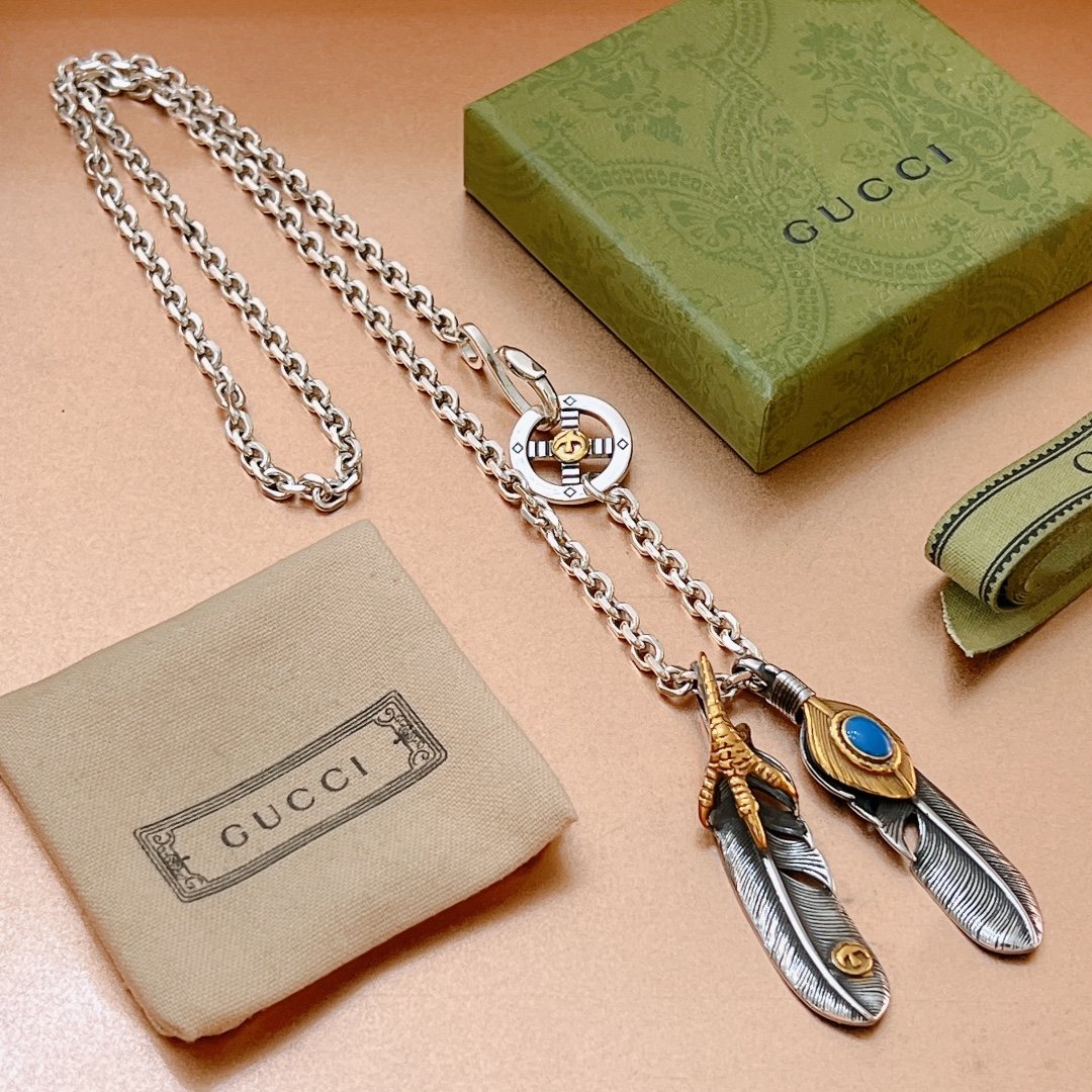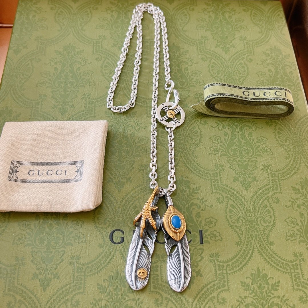 Gucci GG 羽毛项链银色调