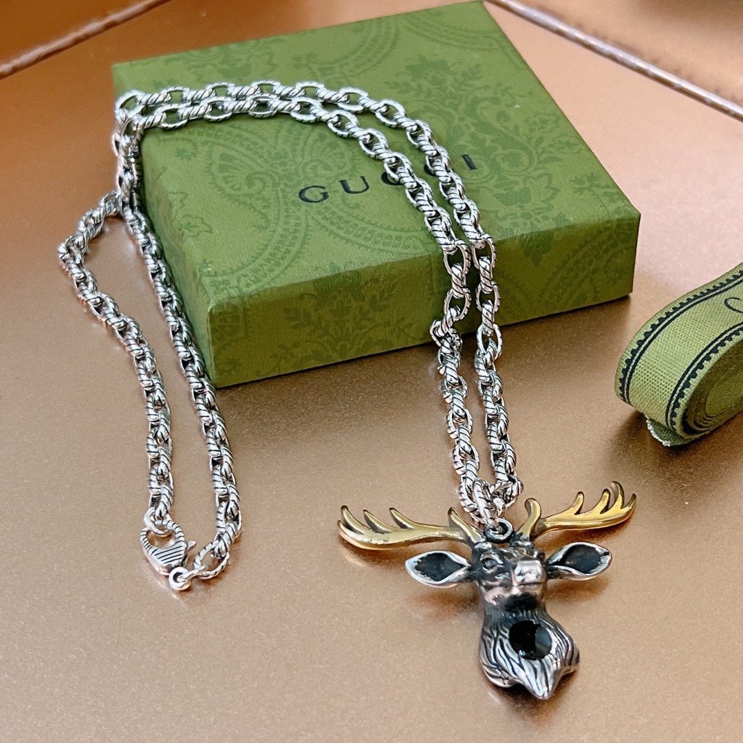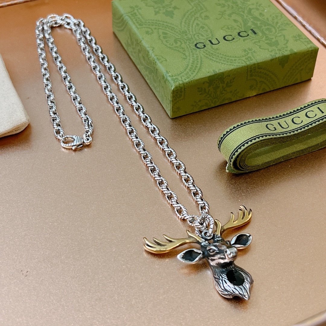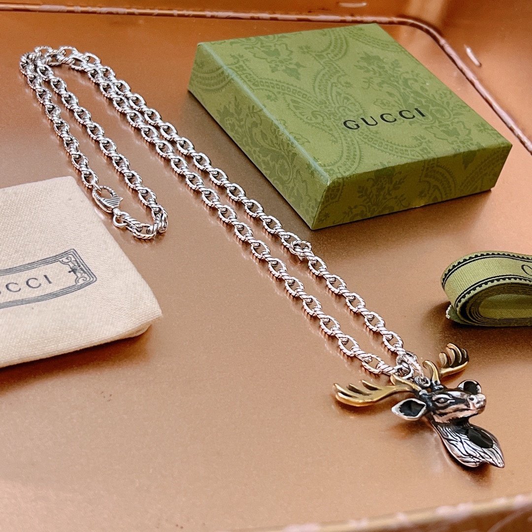 Gucci GG 驯鹿项链银色