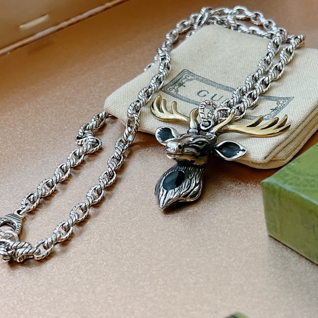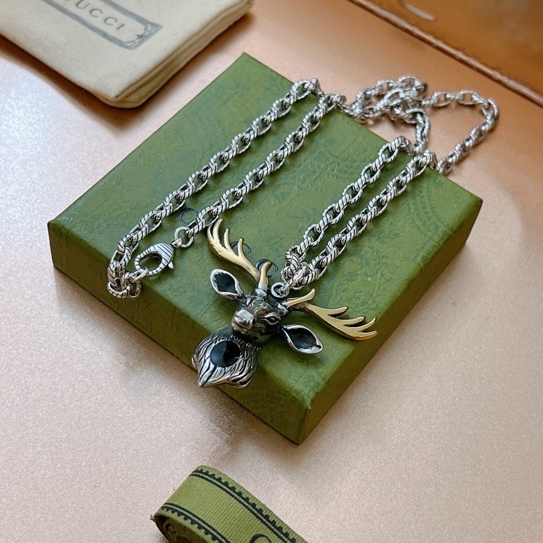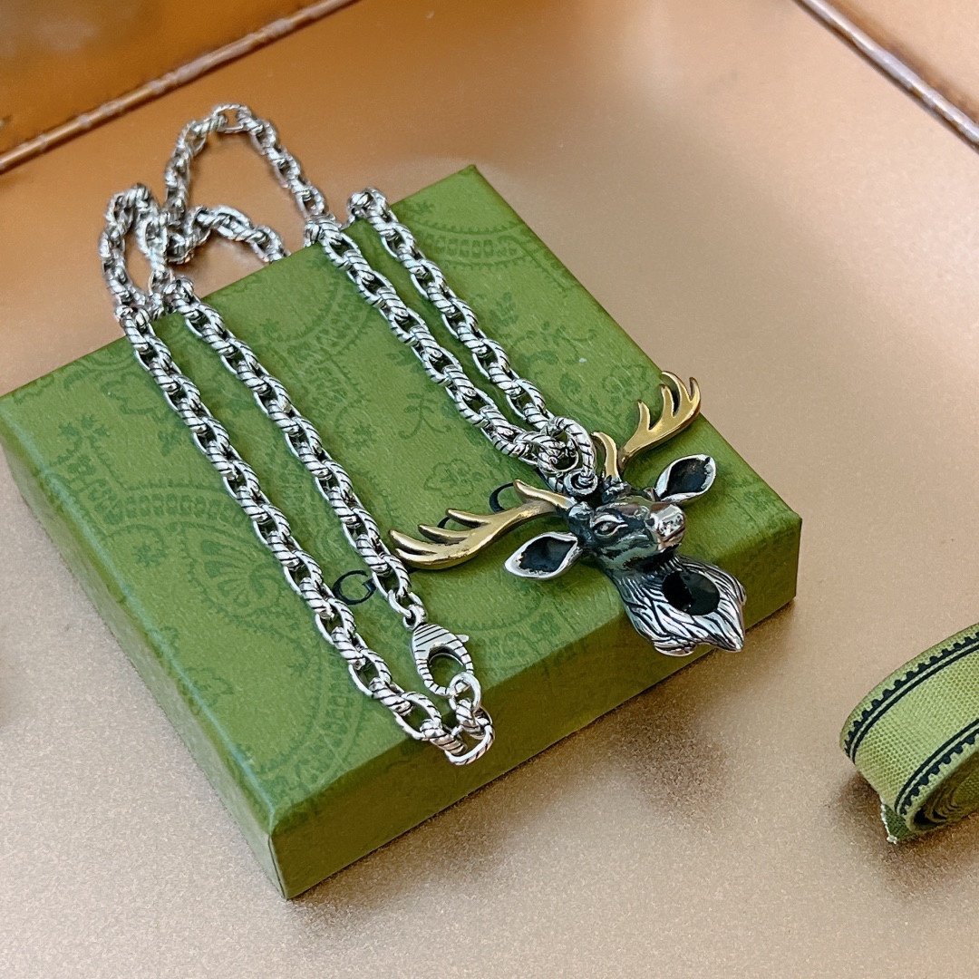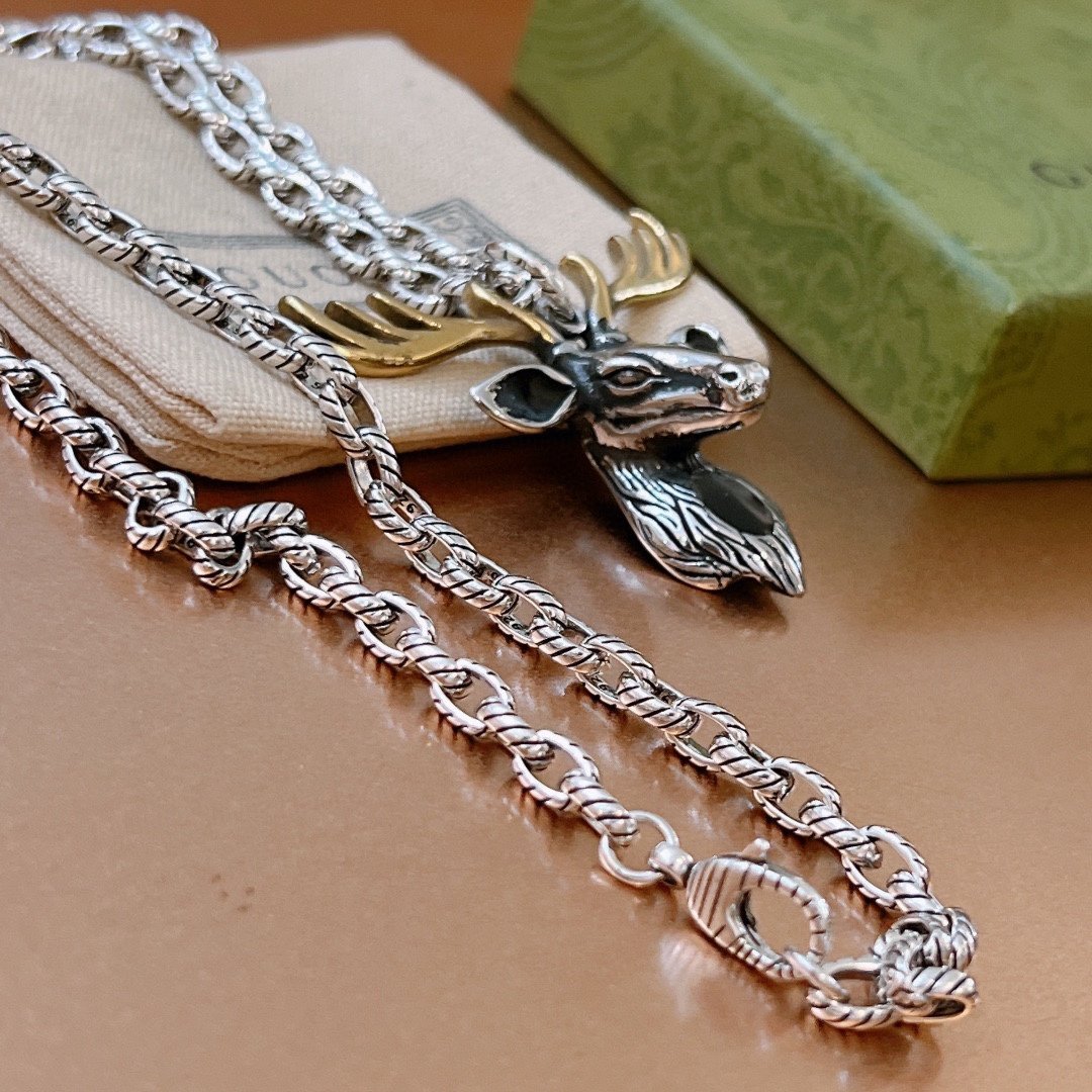 Gucci GG 驯鹿项链银色