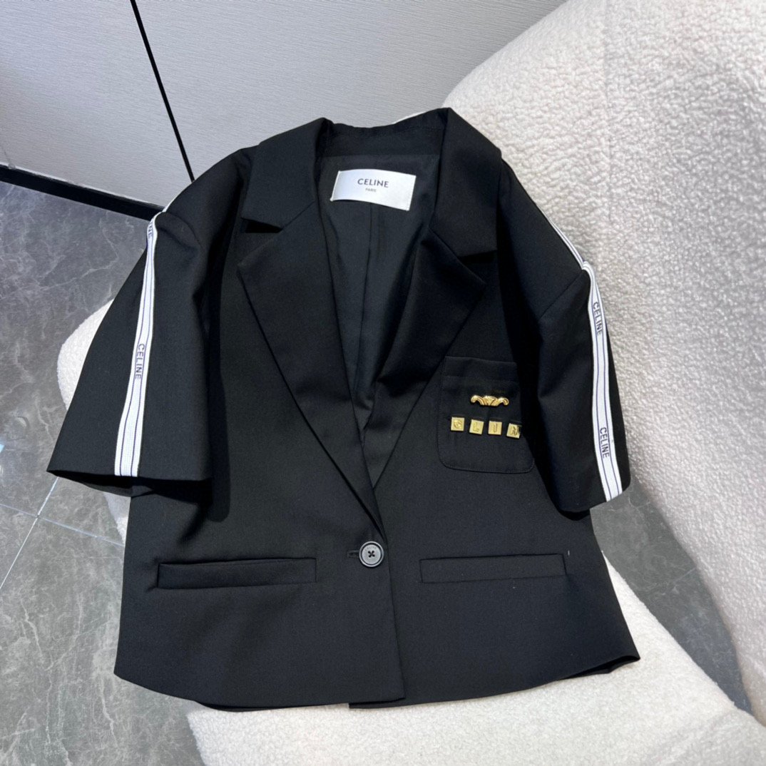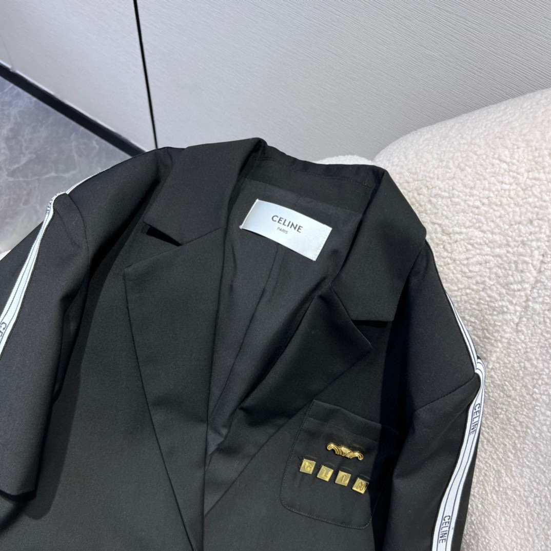 宽领口,垂直口袋饰有金色 CELINE 字母。