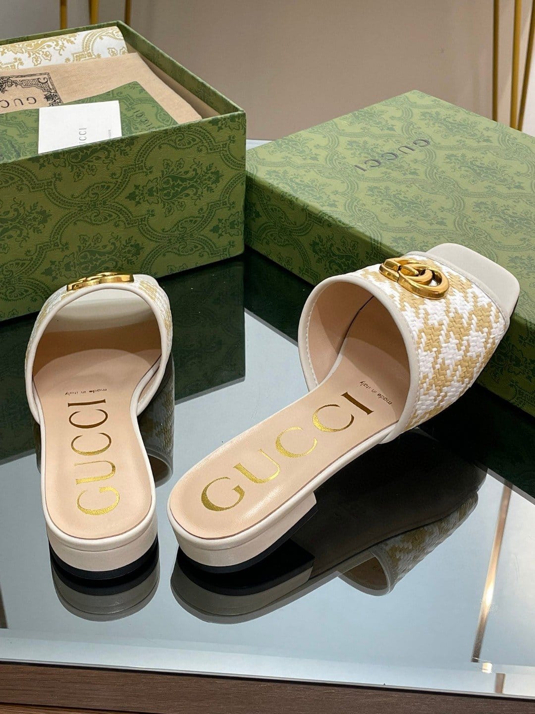 女式双 G 米色拖鞋
