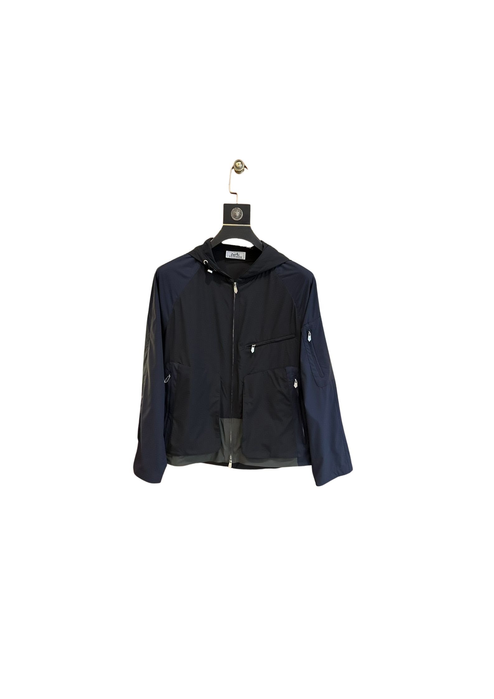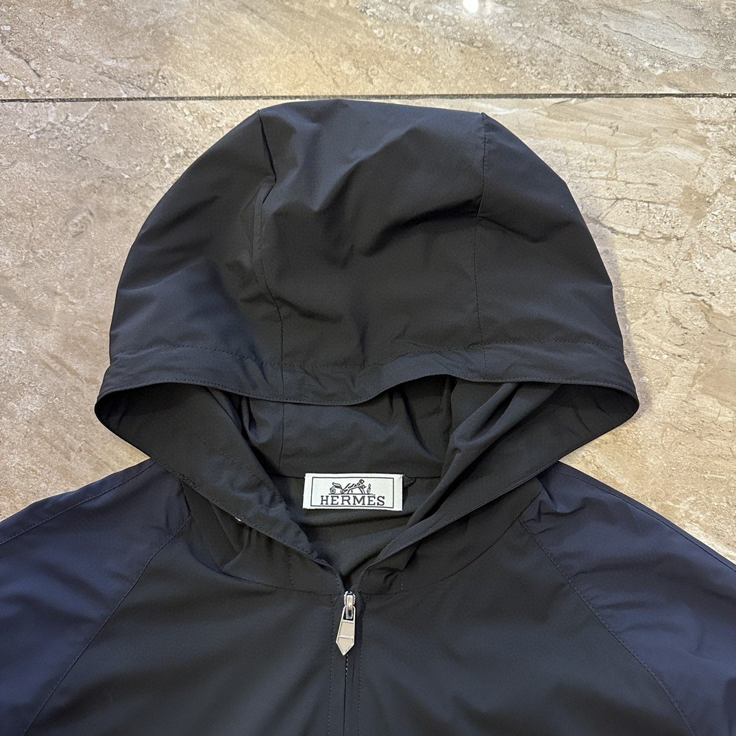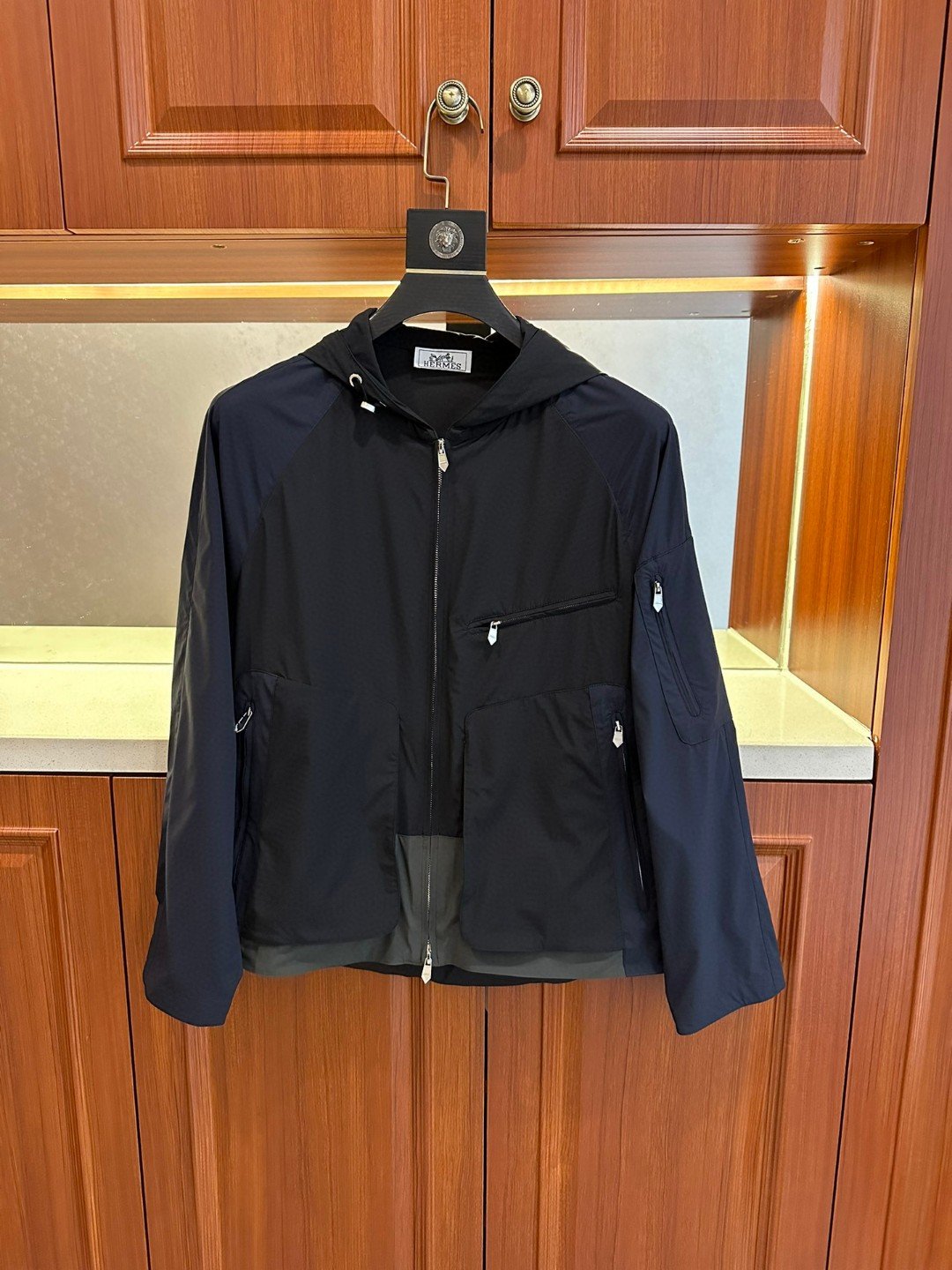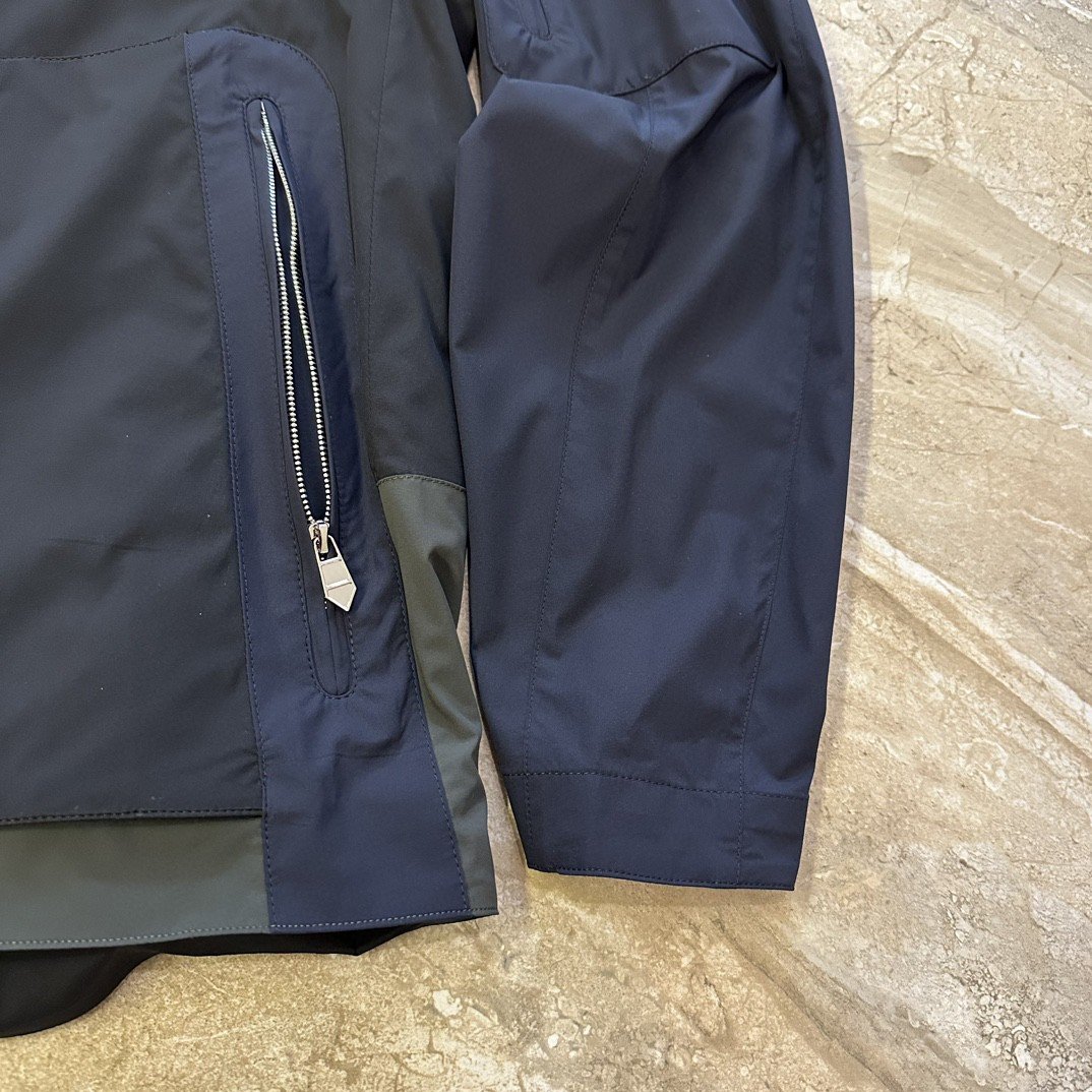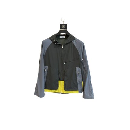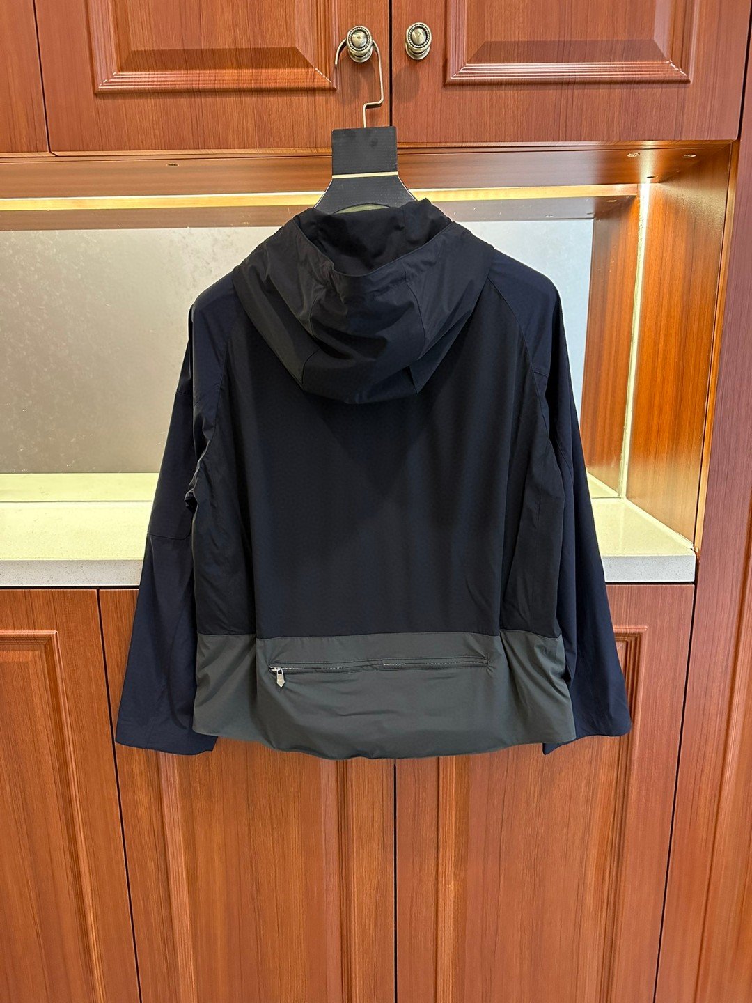 后袋夹克特别设计,主色为黑色,后袋中另加一种颜色,拉链在衬衫中间,口袋也有拉链,帽子设计很合适适合很多人的需求
