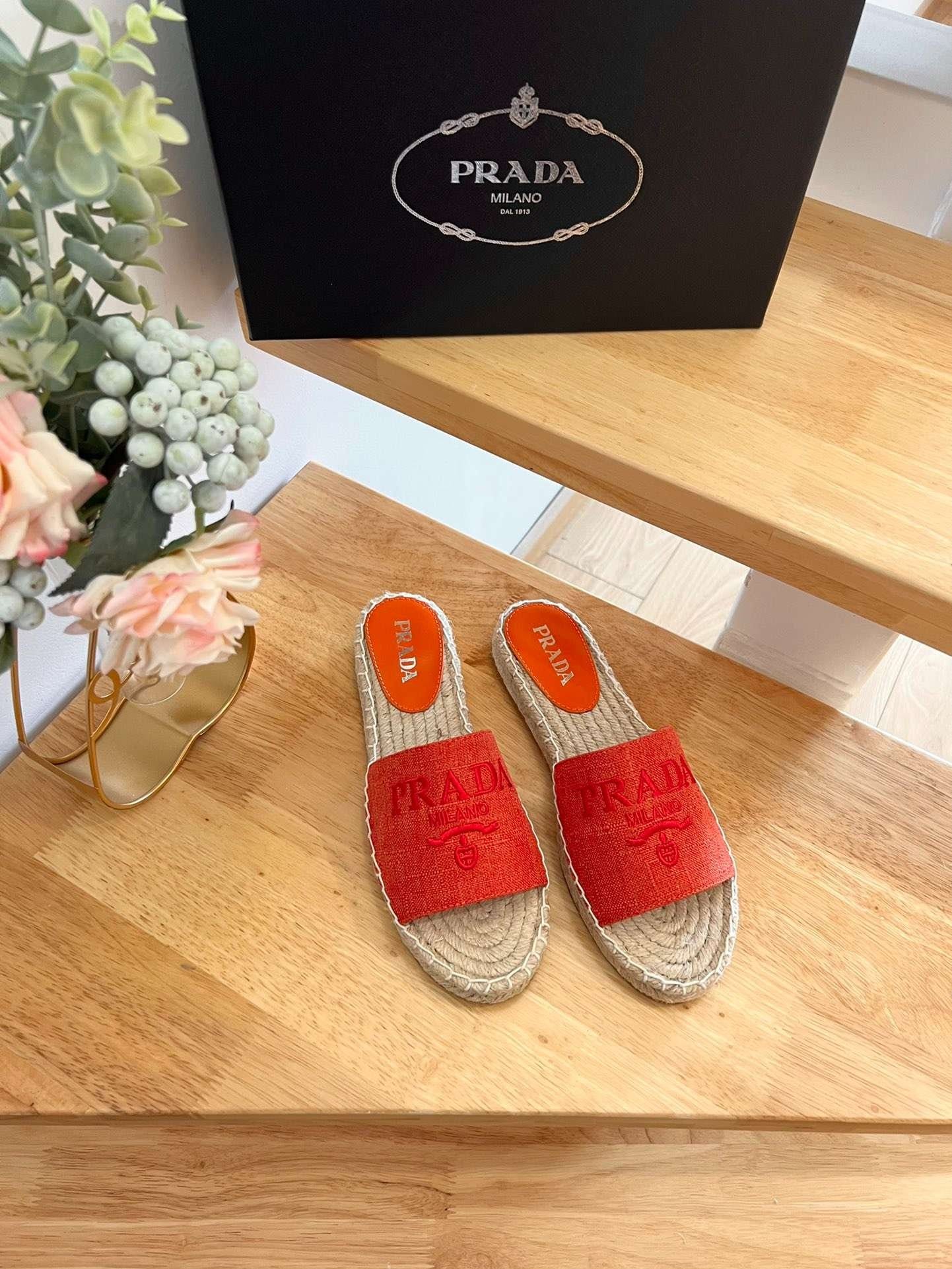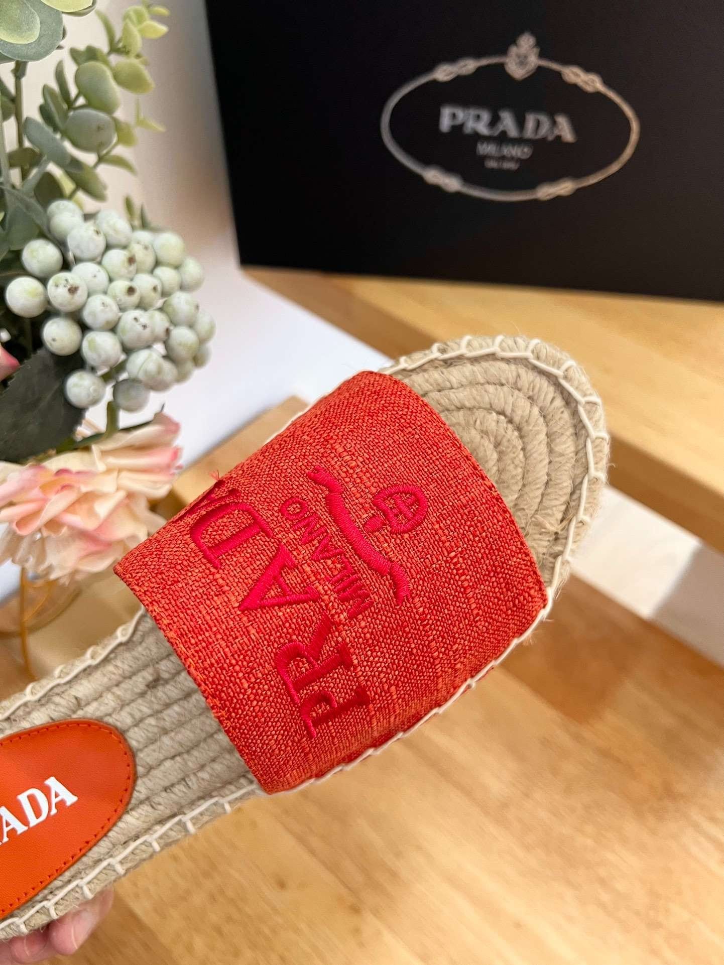 Prada 织物麻底鞋红色 – 1XX619_3LKE_F0049_F_020