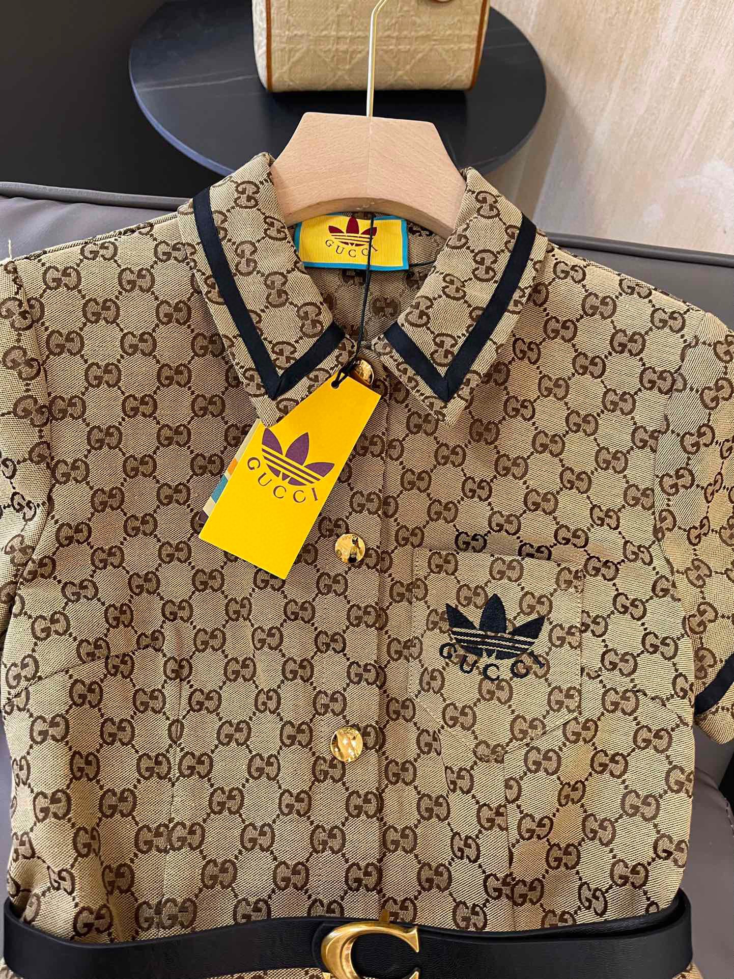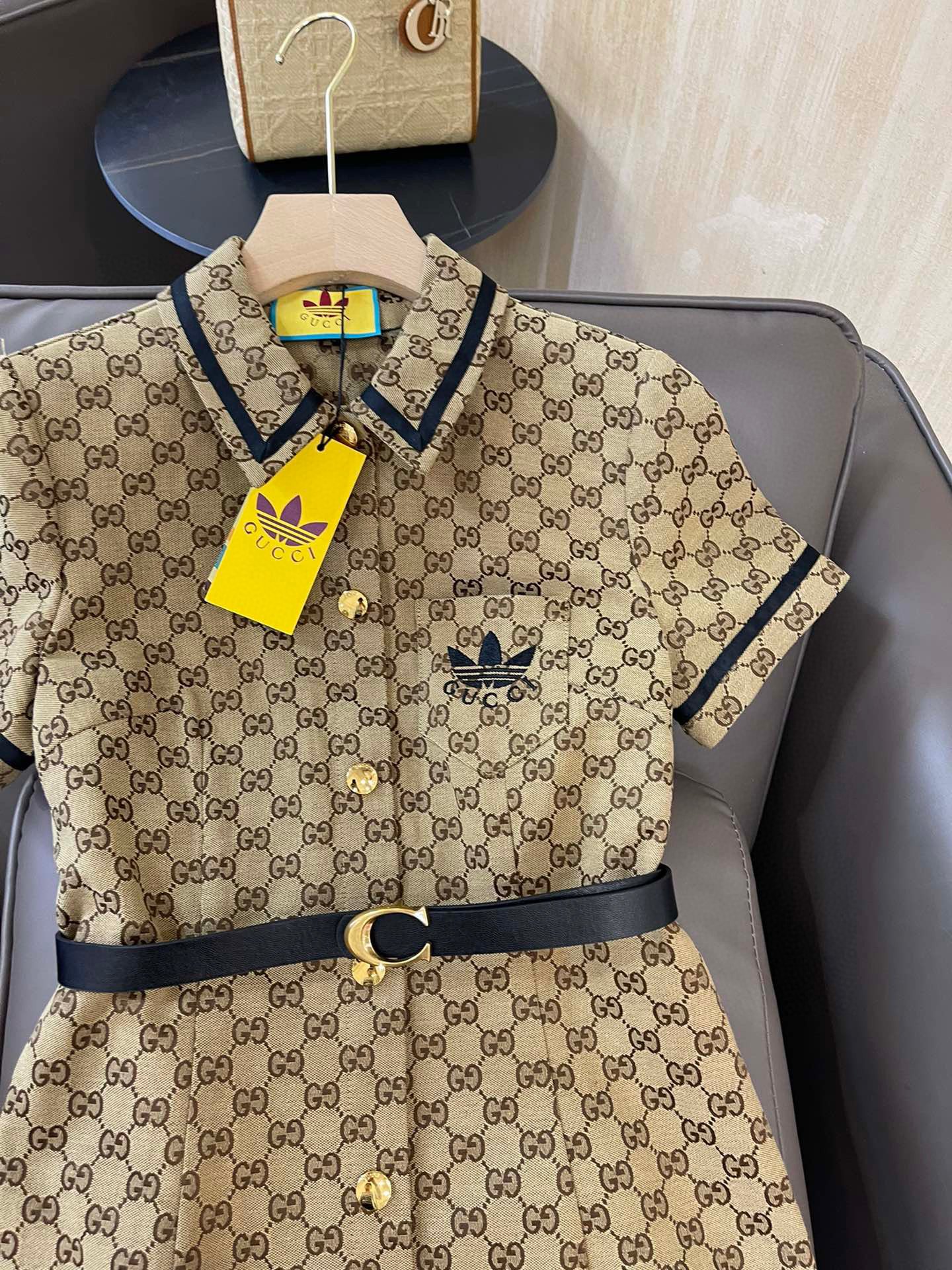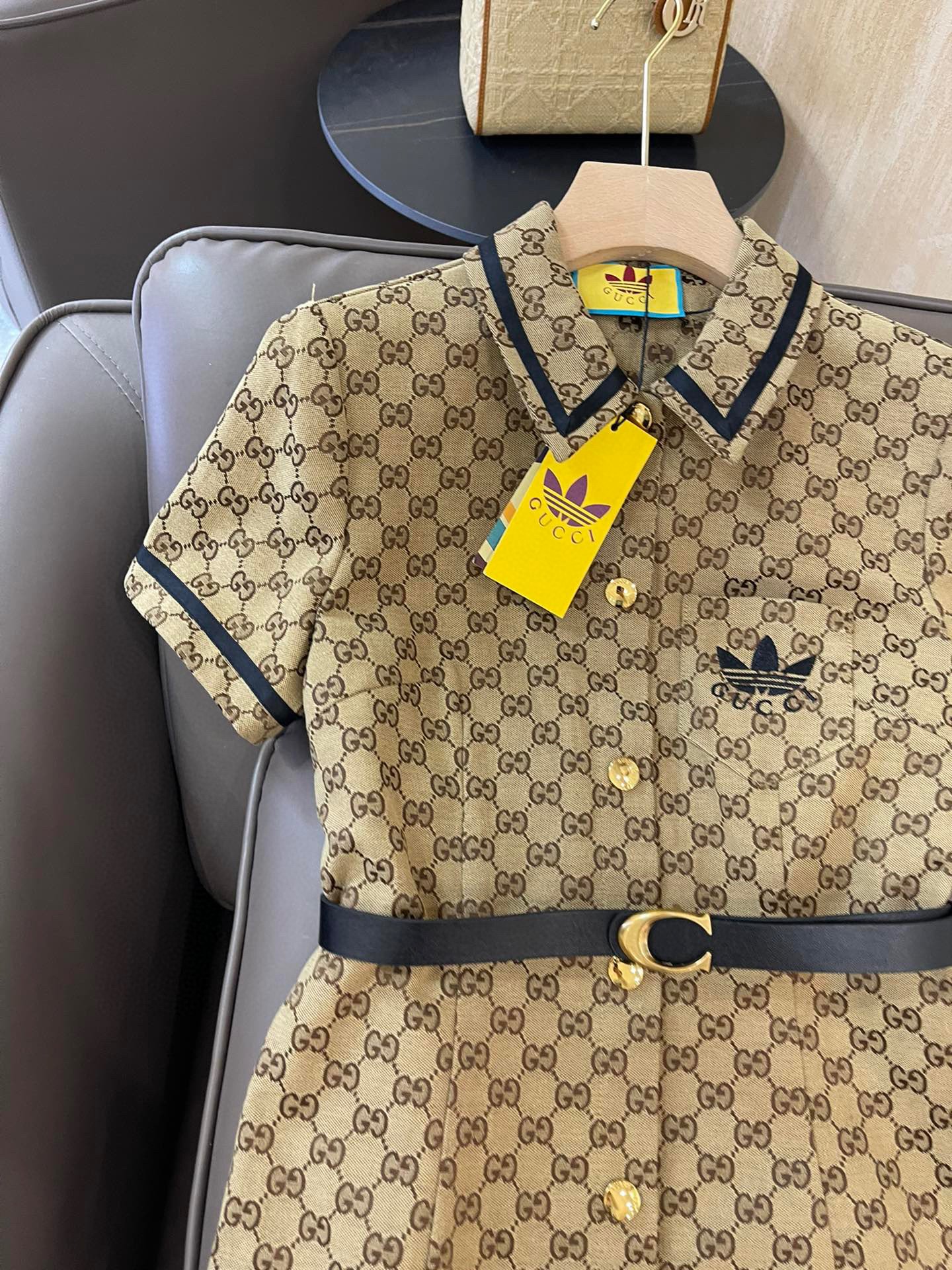 Adidas * Gucci 提花棉质连衣裙 棕色