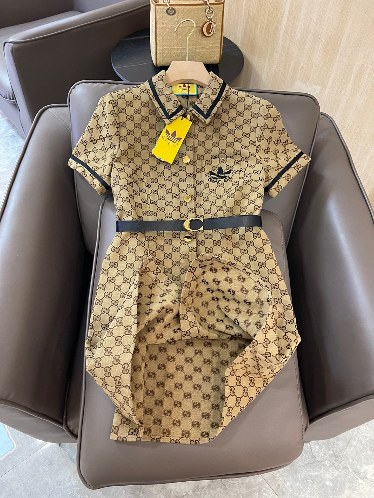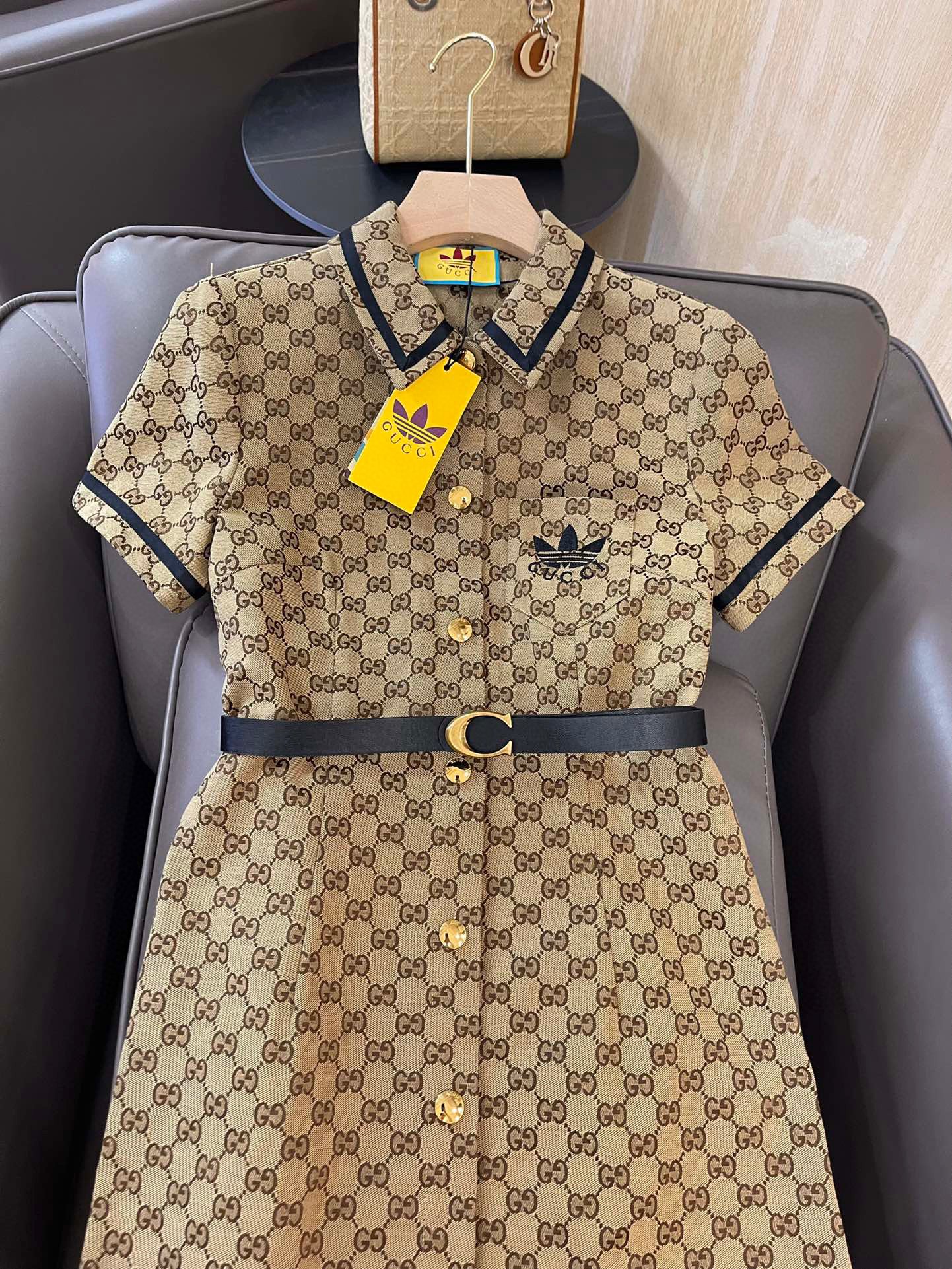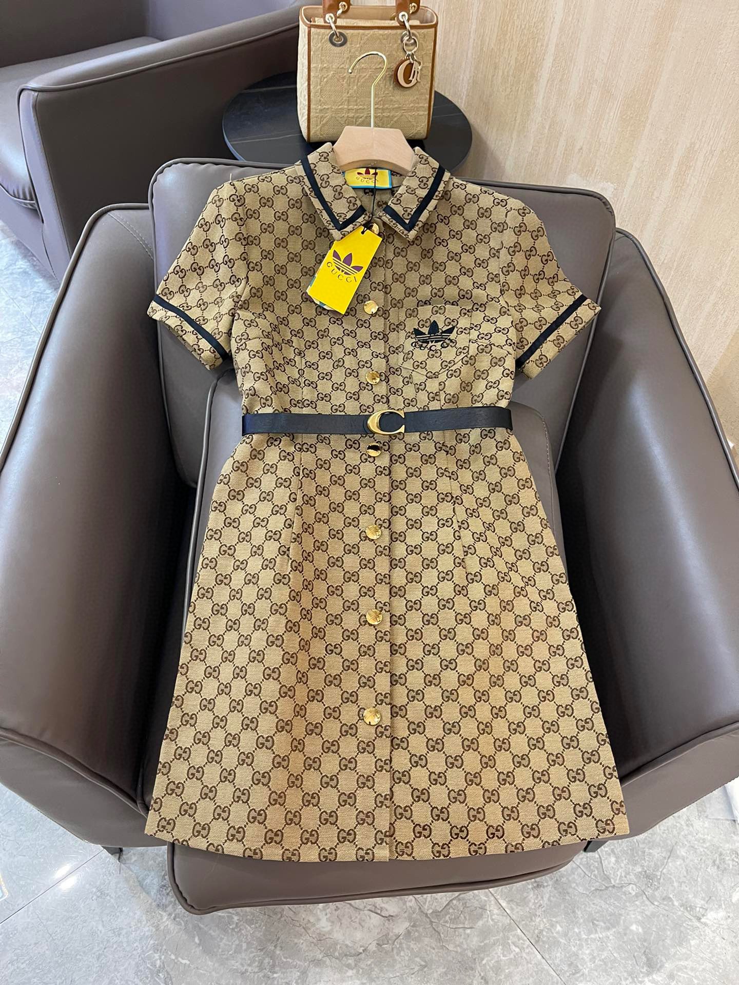 Adidas * Gucci 提花棉质连衣裙 棕色