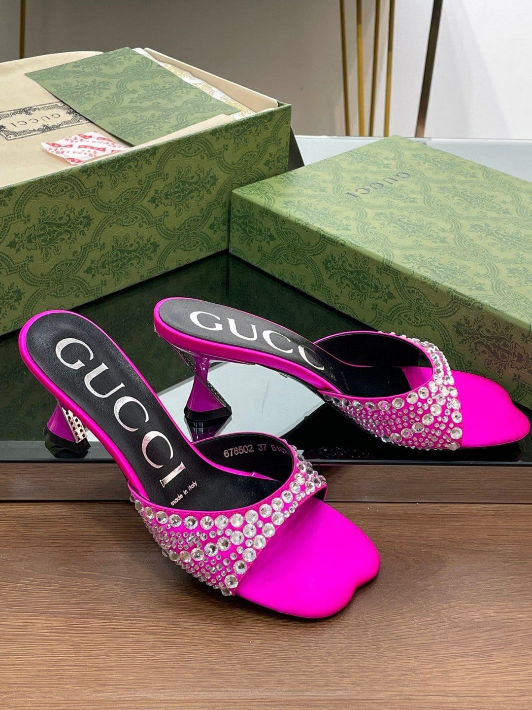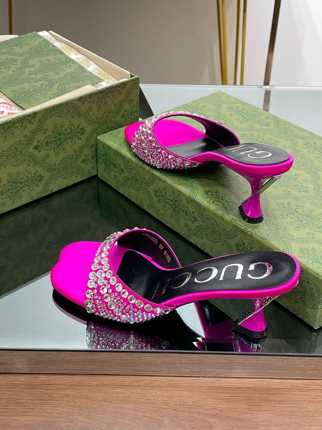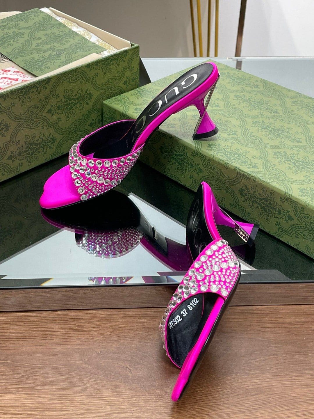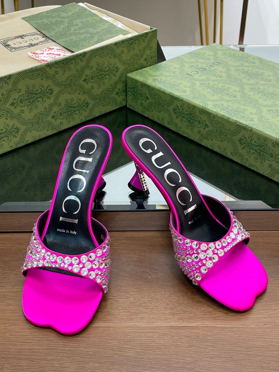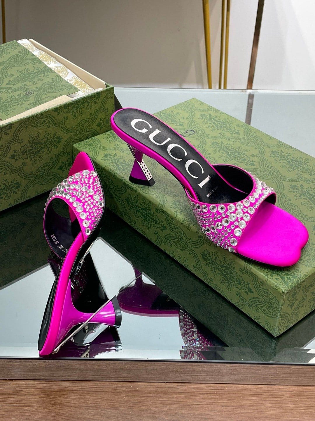 Gucci 粉色水晶拖鞋 – 749663 F1400 5626