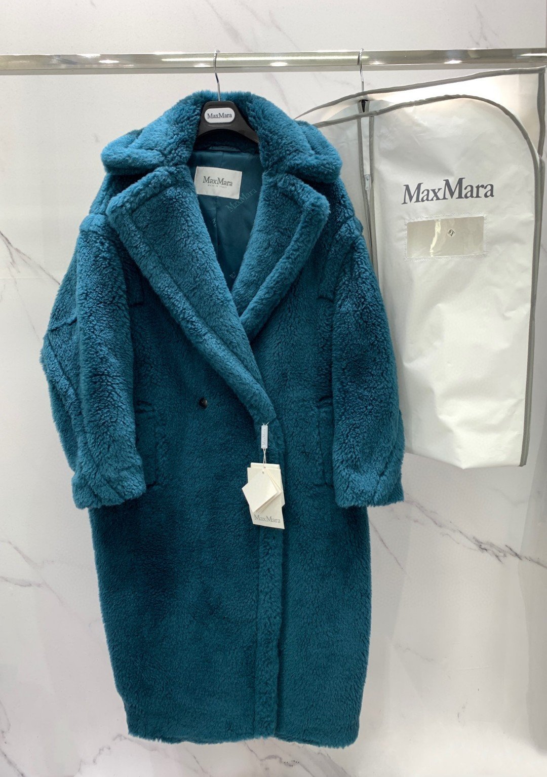 泰迪熊标志外套于 2013 年设计,灵感源自 80 年代的一件经典服装,并立即成为一款热门外套。明星和有影响力的人都喜欢它的魅力和俏皮的完美结合。能够生产独特的人造毛皮。这件外套的丰盈体积彰显了这种面料的华丽奢华。