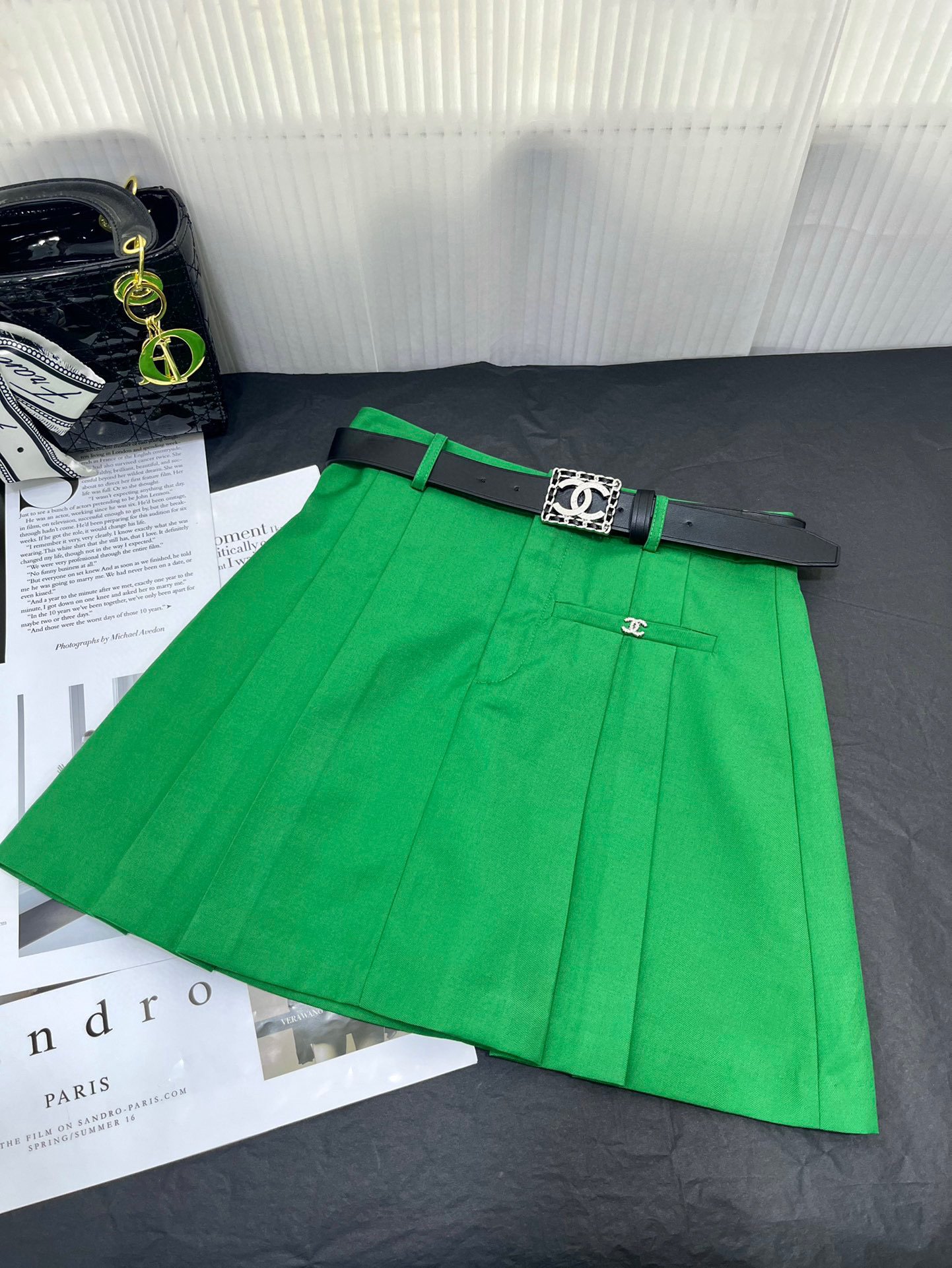香奈儿百褶裙绿色