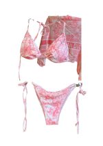 女式粉色两件式泳衣