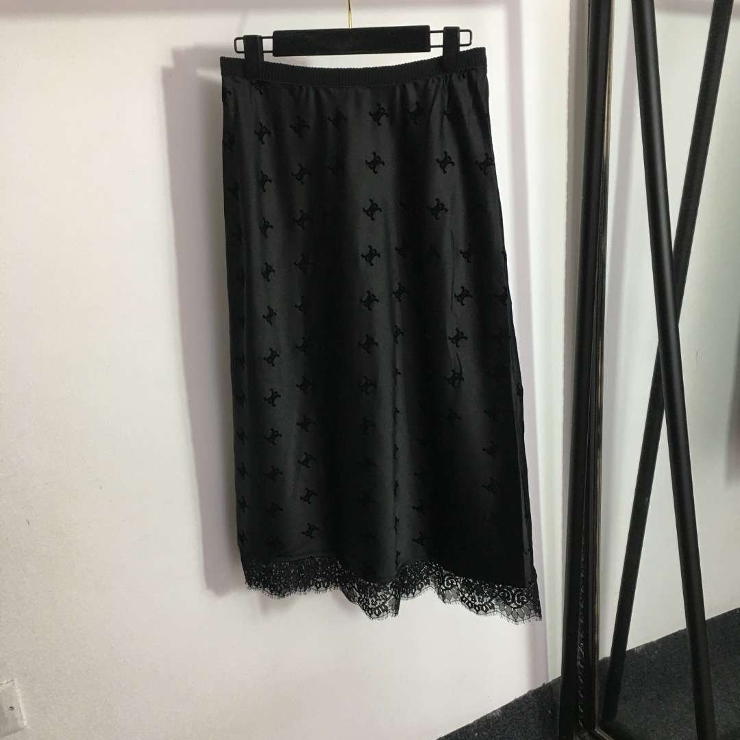 最新性感蕾丝下摆植绒标志高腰开衩裙