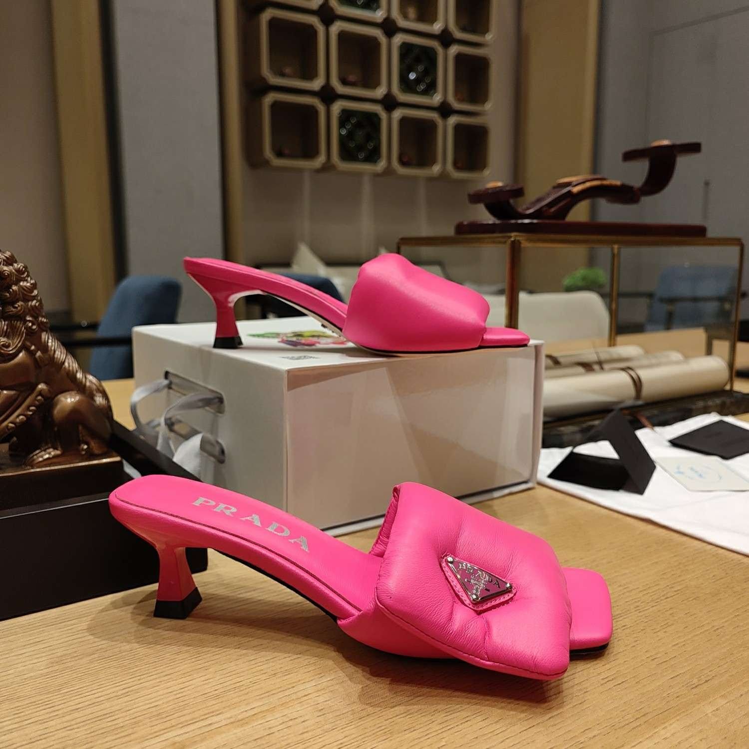 Prada 软垫纳帕皮拖鞋粉色