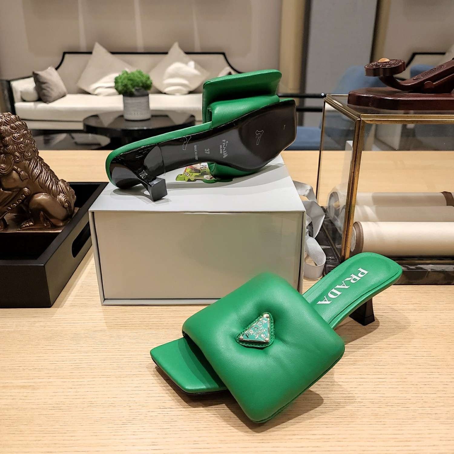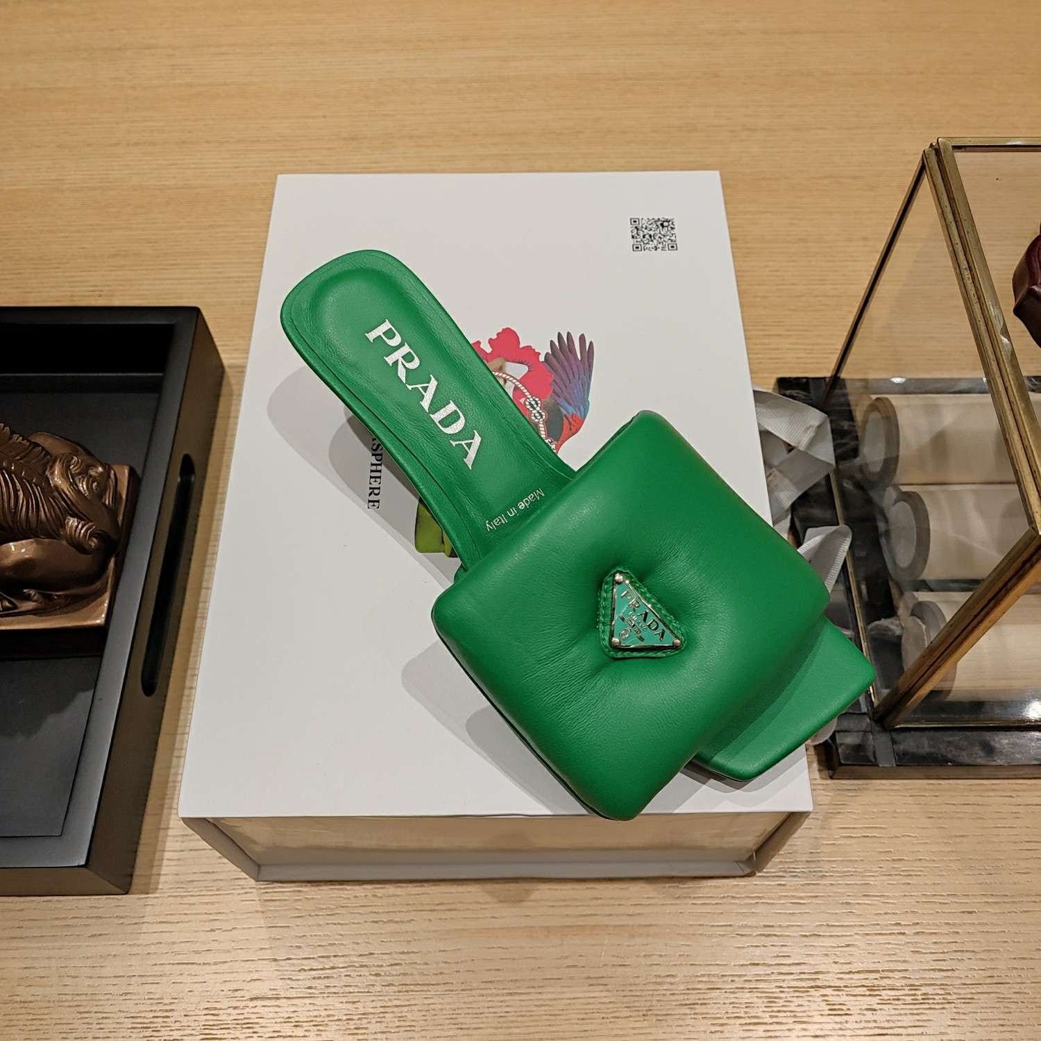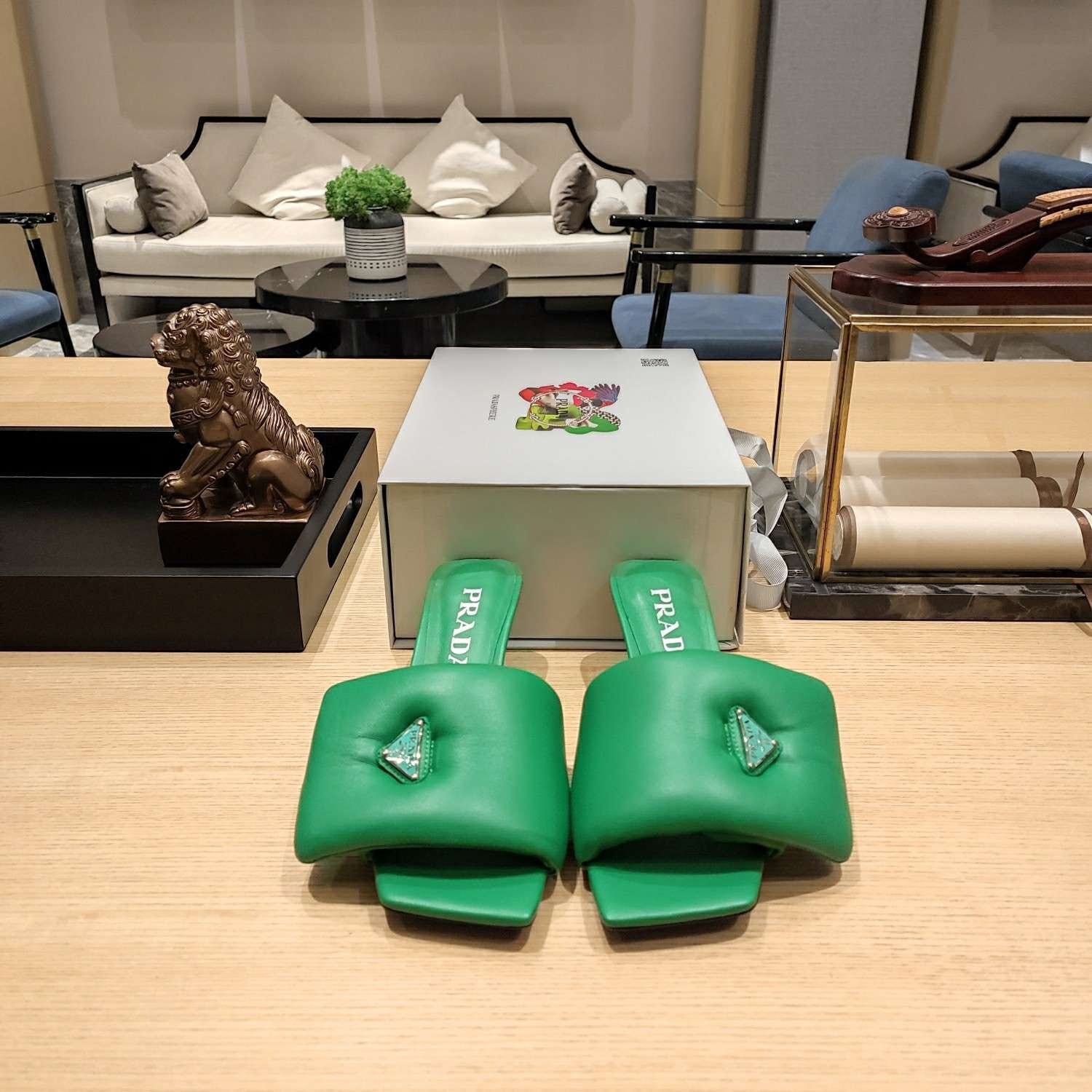 Prada 软垫纳帕皮拖鞋绿色