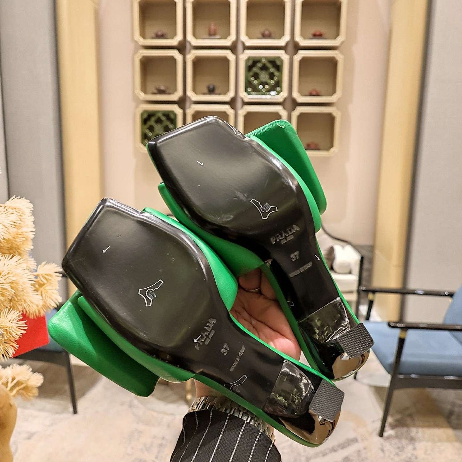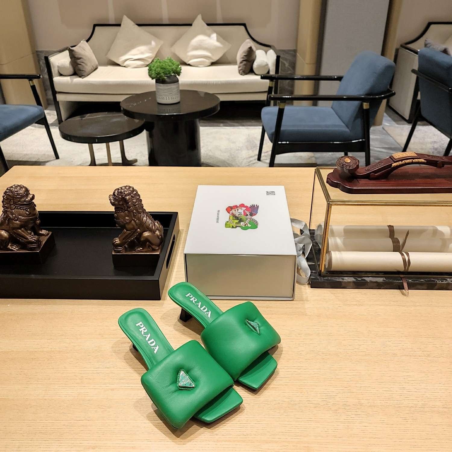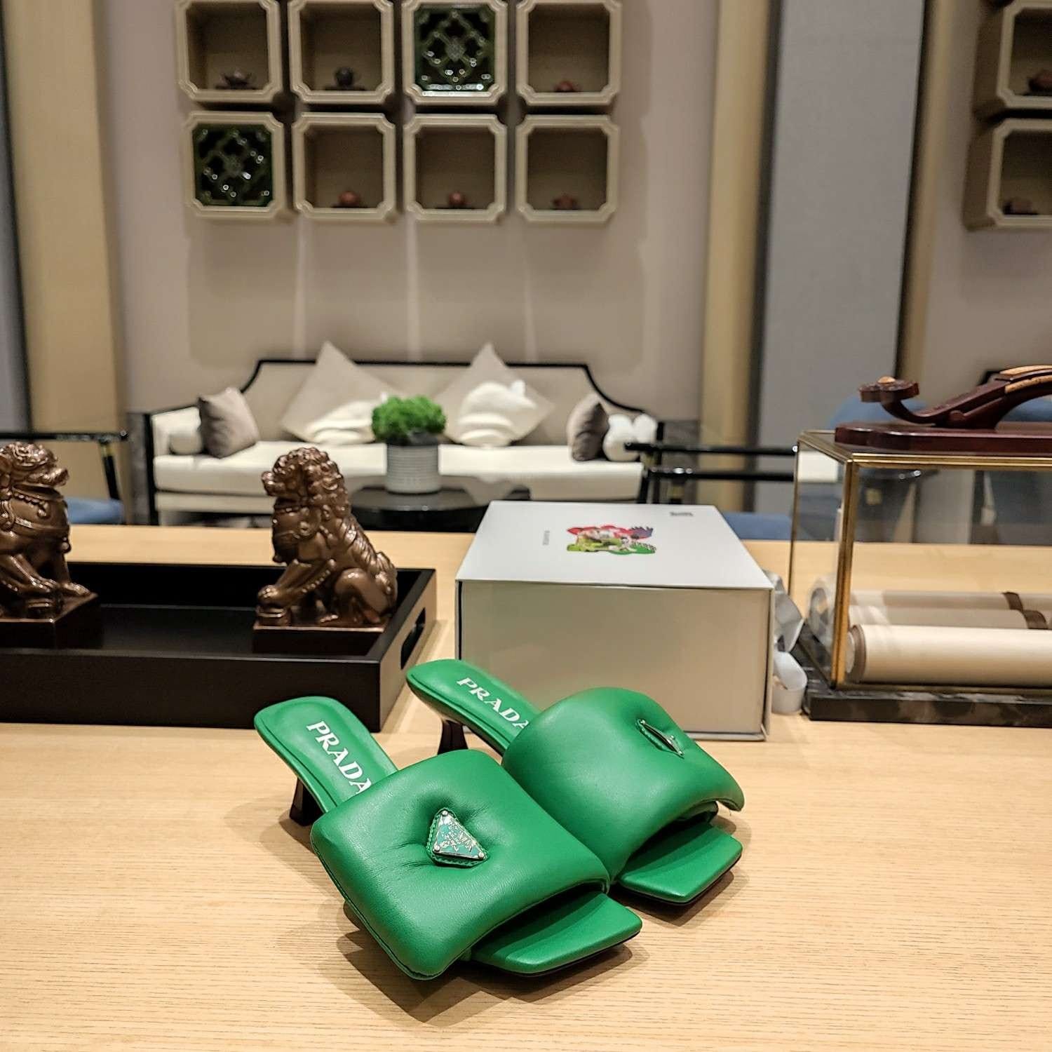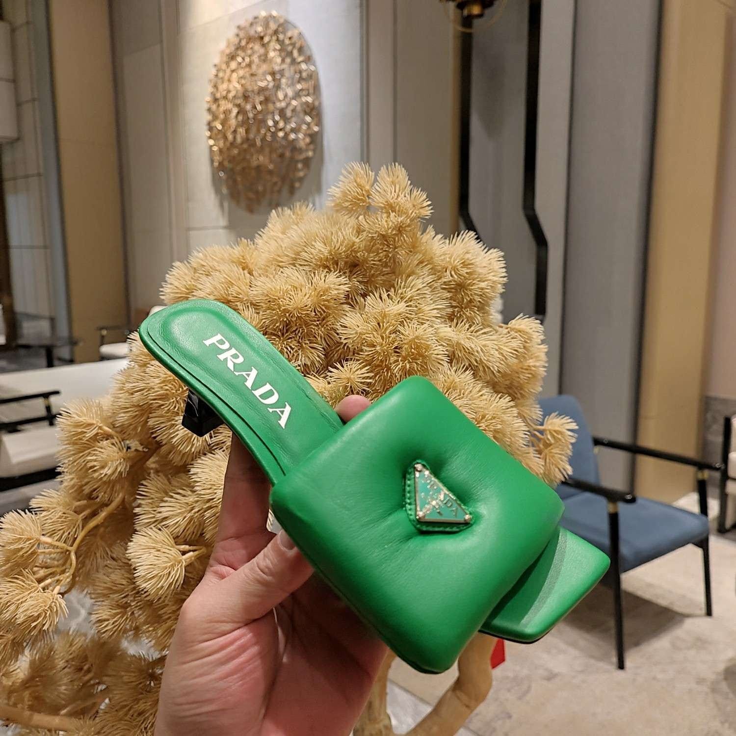 Prada 软垫纳帕皮拖鞋绿色