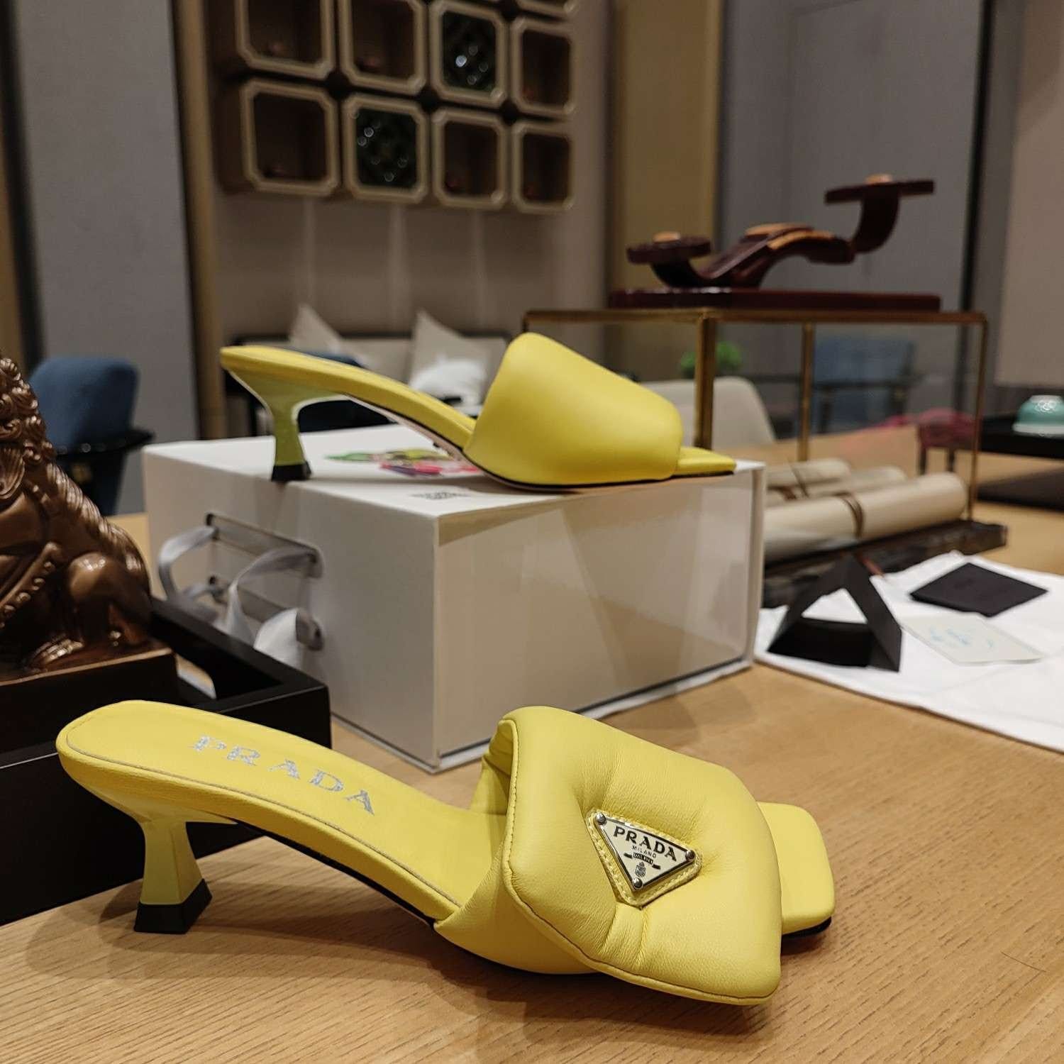 Prada 标志性的花朵形状为这款绑带高跟鞋增添了诱人的美感。传统上用于高端经典鞋履,自 90 年代以来,拉绒在 Prada 系列中以现代设计进行了重新诠释,创造出反映品牌两侧的合成效果