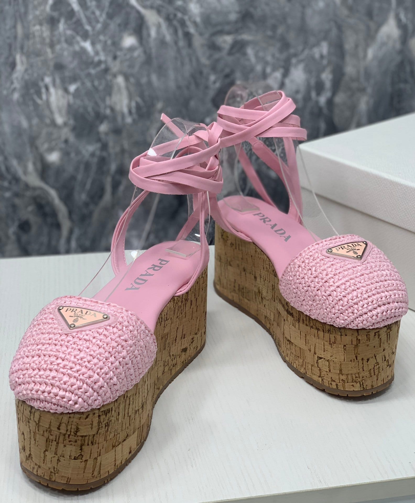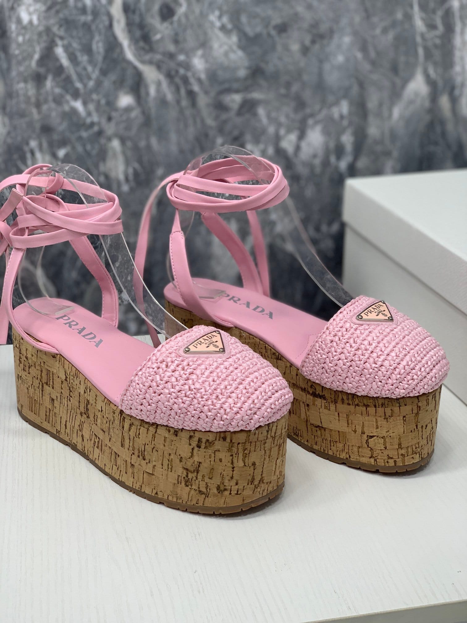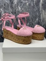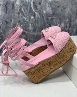 Prada 钩针编织坡跟凉鞋粉色