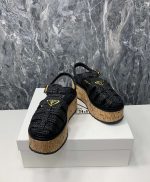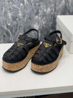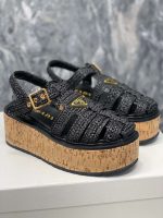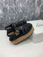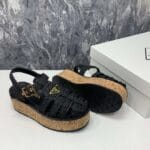 Prada 钩针编织坡跟凉鞋黑色