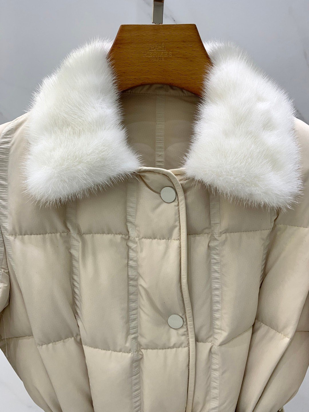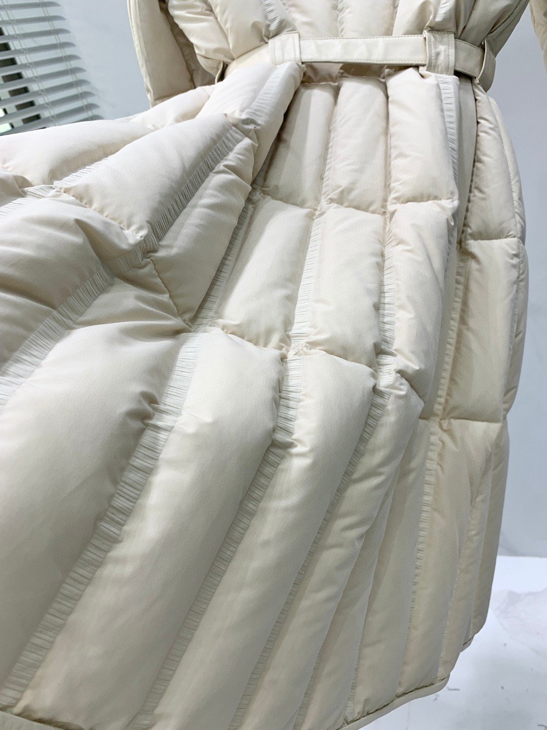 长外套是一种长裙,有褶皱,有腰带,高领,柔软的毛皮,长纽扣根据衬衫的形状,两个侧袋。