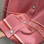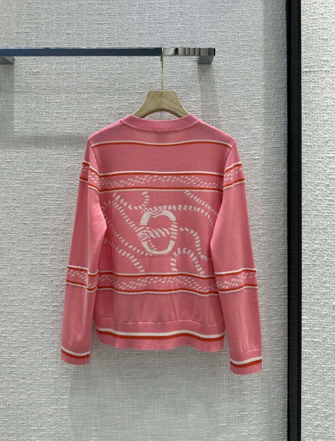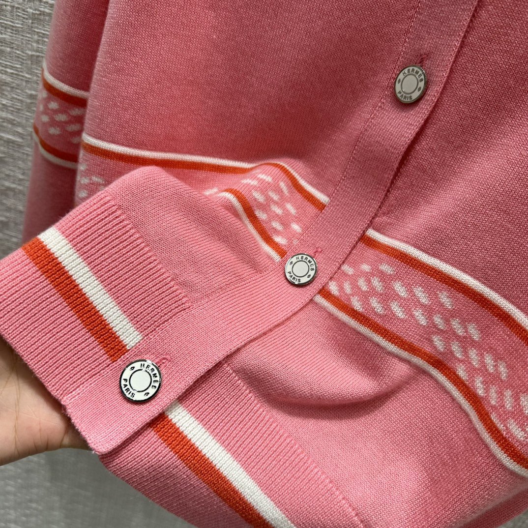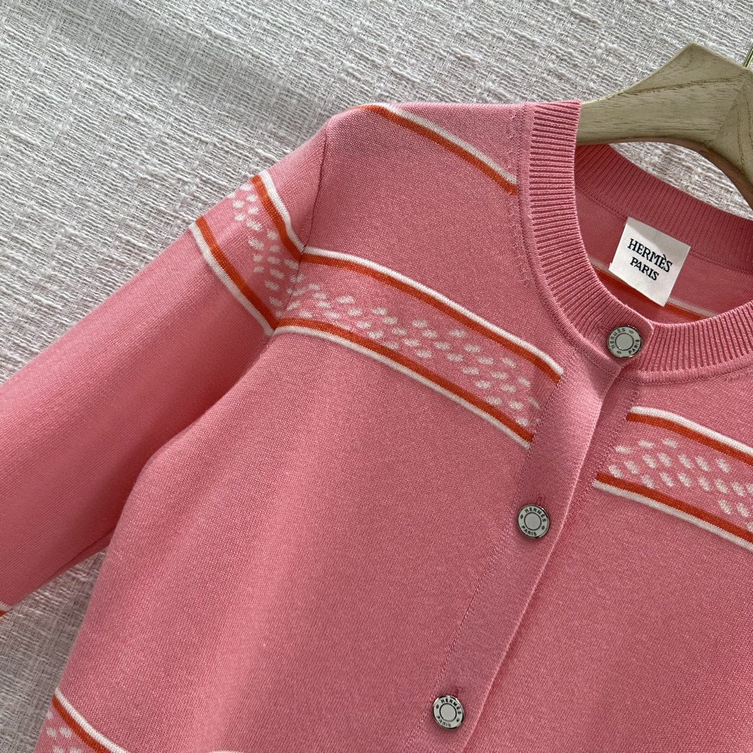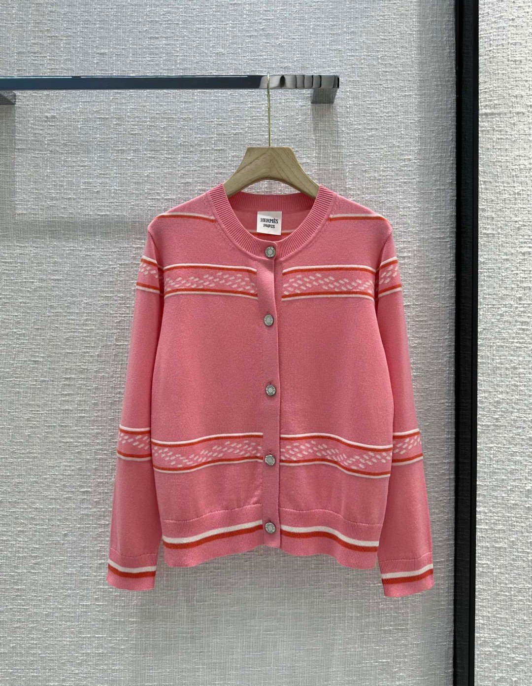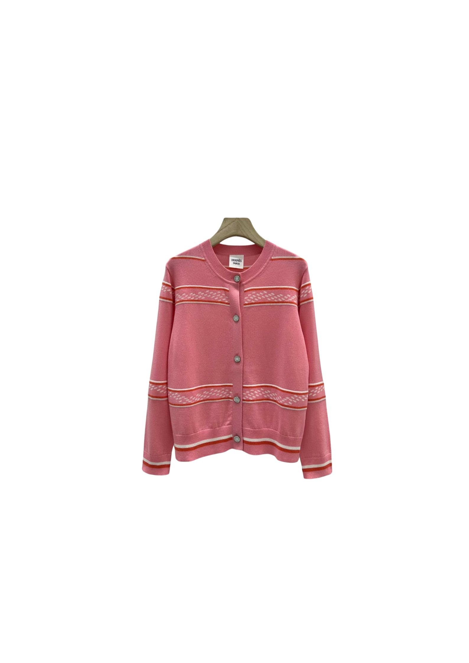 长袖开衫是一款圆领开衫,前中部采用银色纽扣开合。衬衫周围有水平线