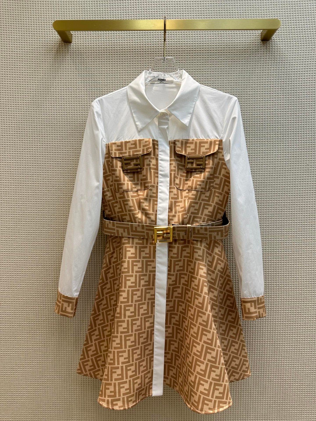 正面开口有纽扣、腰带,前面有 Fendi Roma 刺绣。