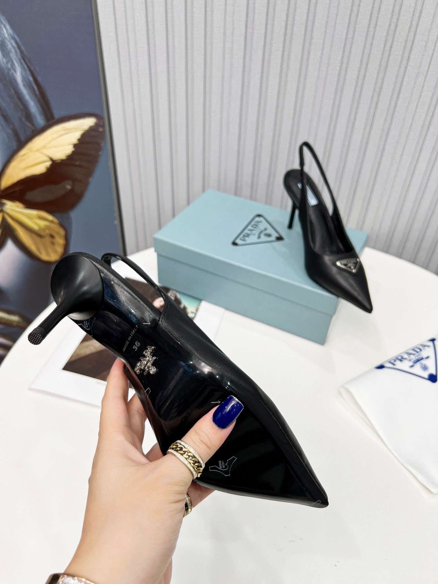 Prada 黑色拉丝吊带高跟鞋