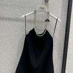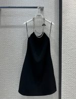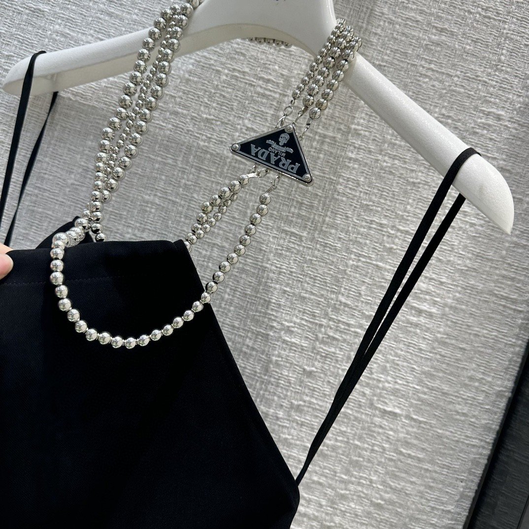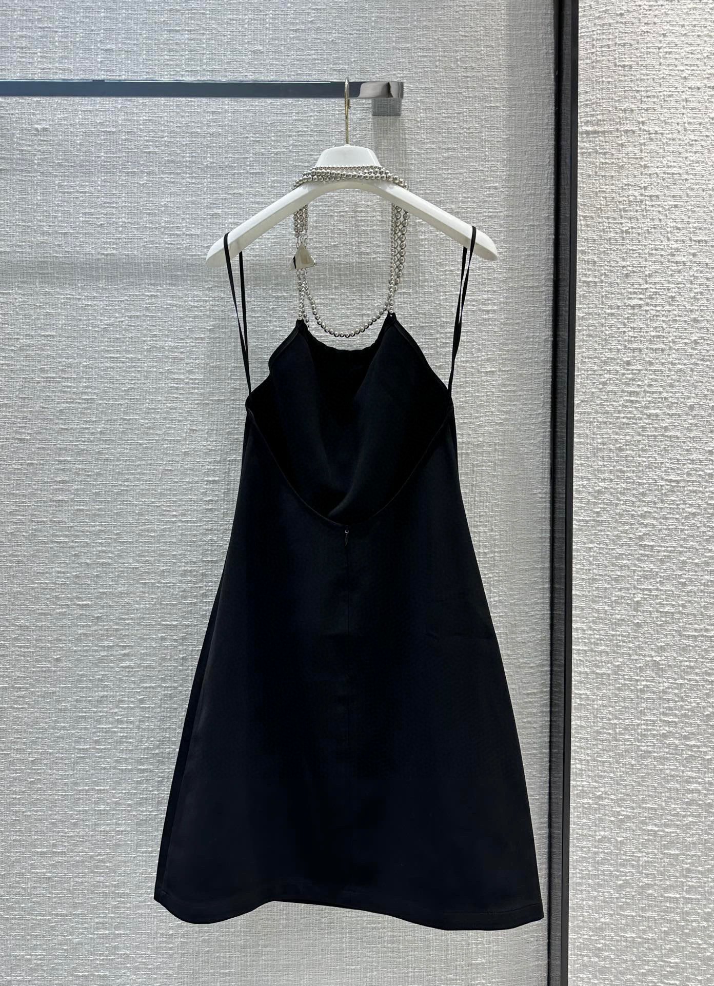 科技细呢细呢迷你连衣裙大胆精致,为这款采用科技细布制成的时尚迷你连衣裙注入活力。细肩带增强了背部的美感,与装饰服装的金属三角形标志相交。现代挂脖式褶皱凸显女性气质。