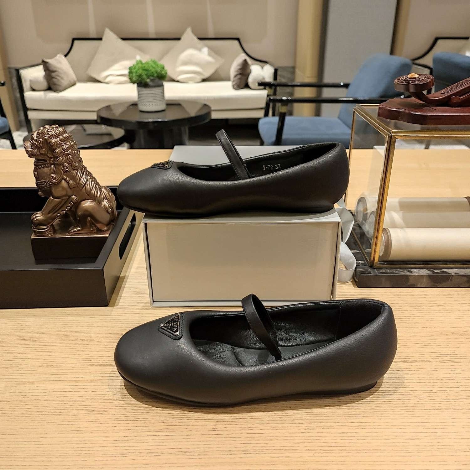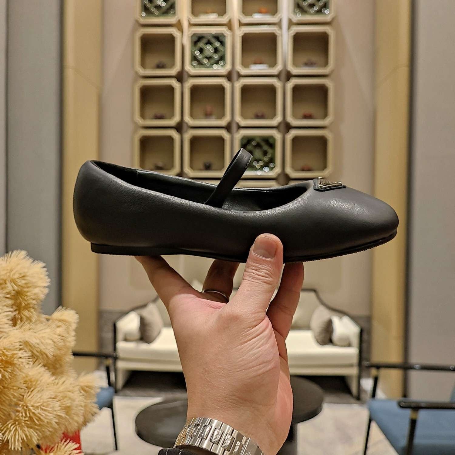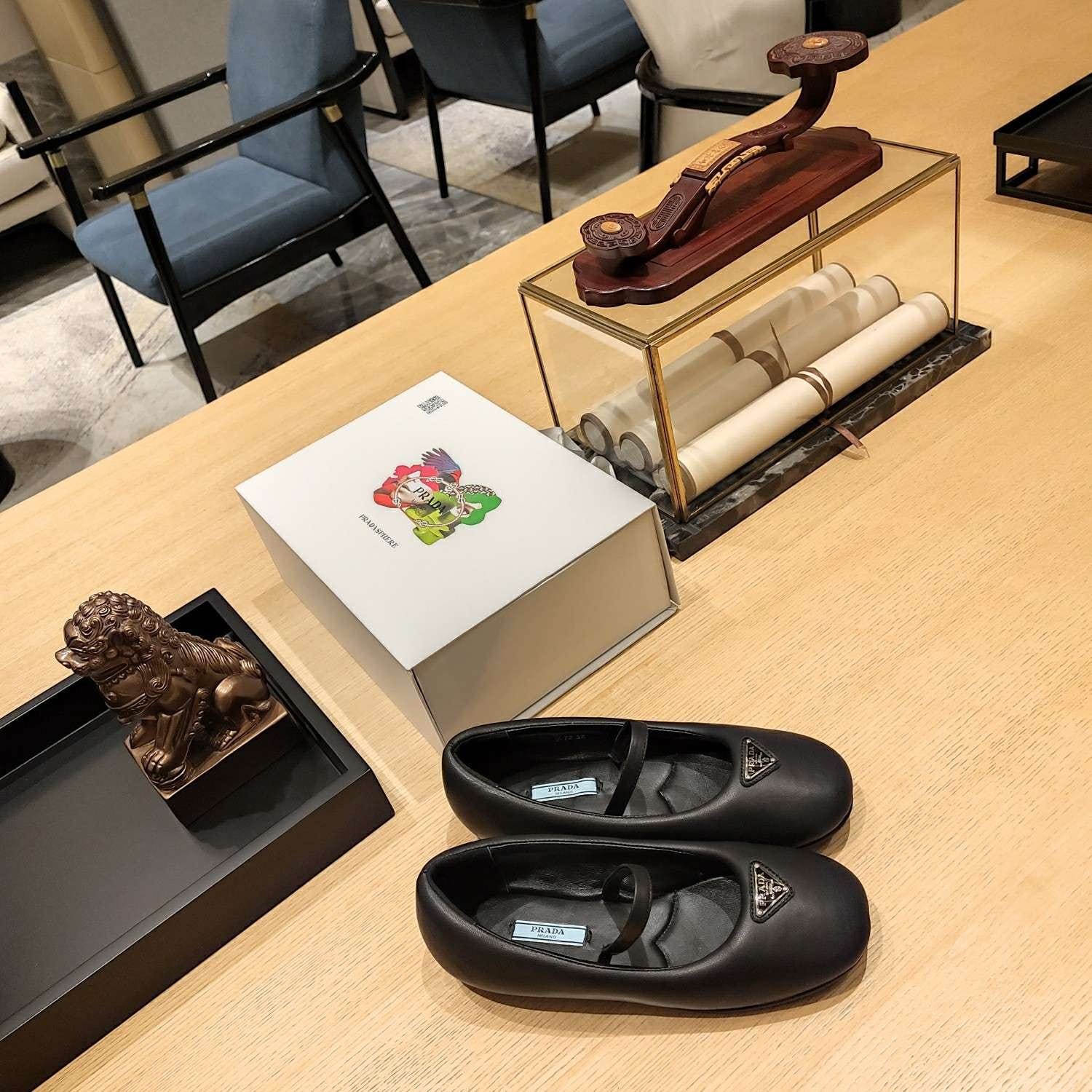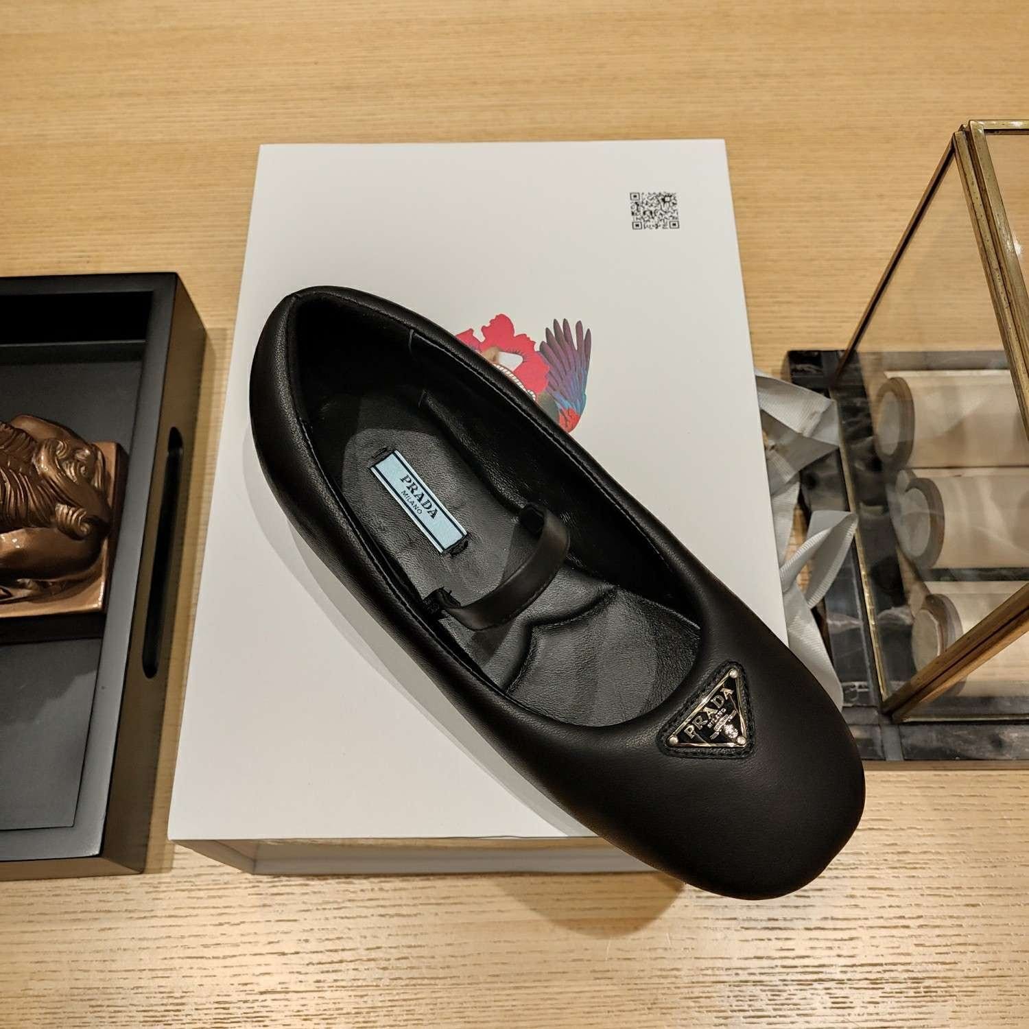 Prada 软垫纳帕皮芭蕾舞平底鞋黑色