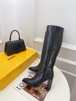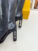 FD 剪裁高跟靴长方头,方头。鞋跟镶嵌 FF 图案