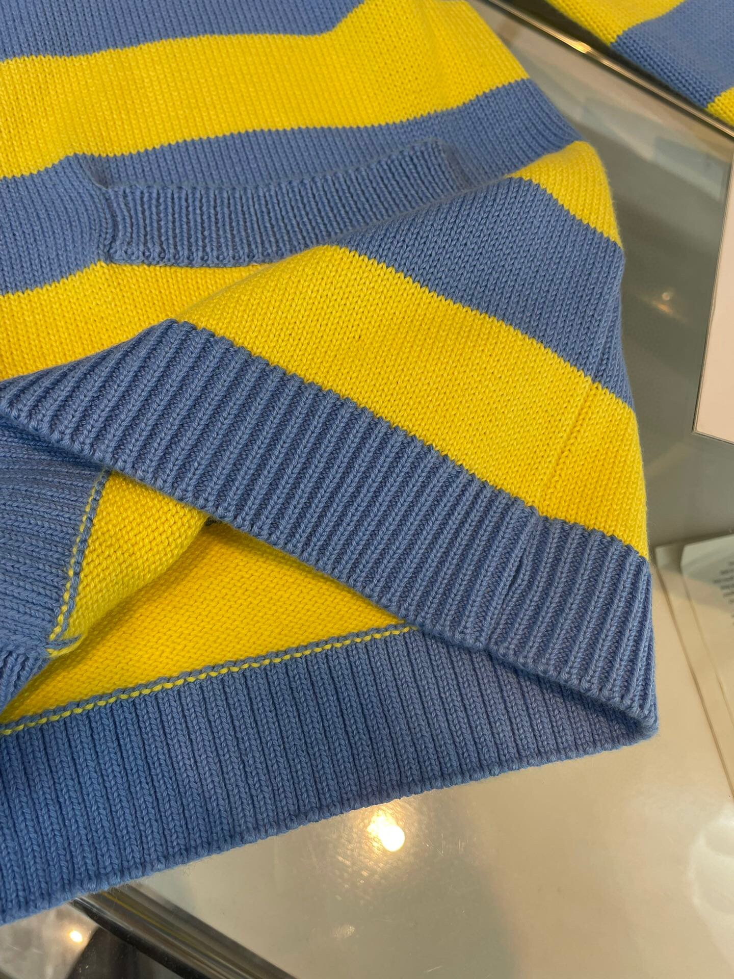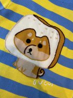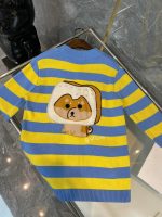 条纹针织开衫毛衣背面卡通修补百吉饼狗